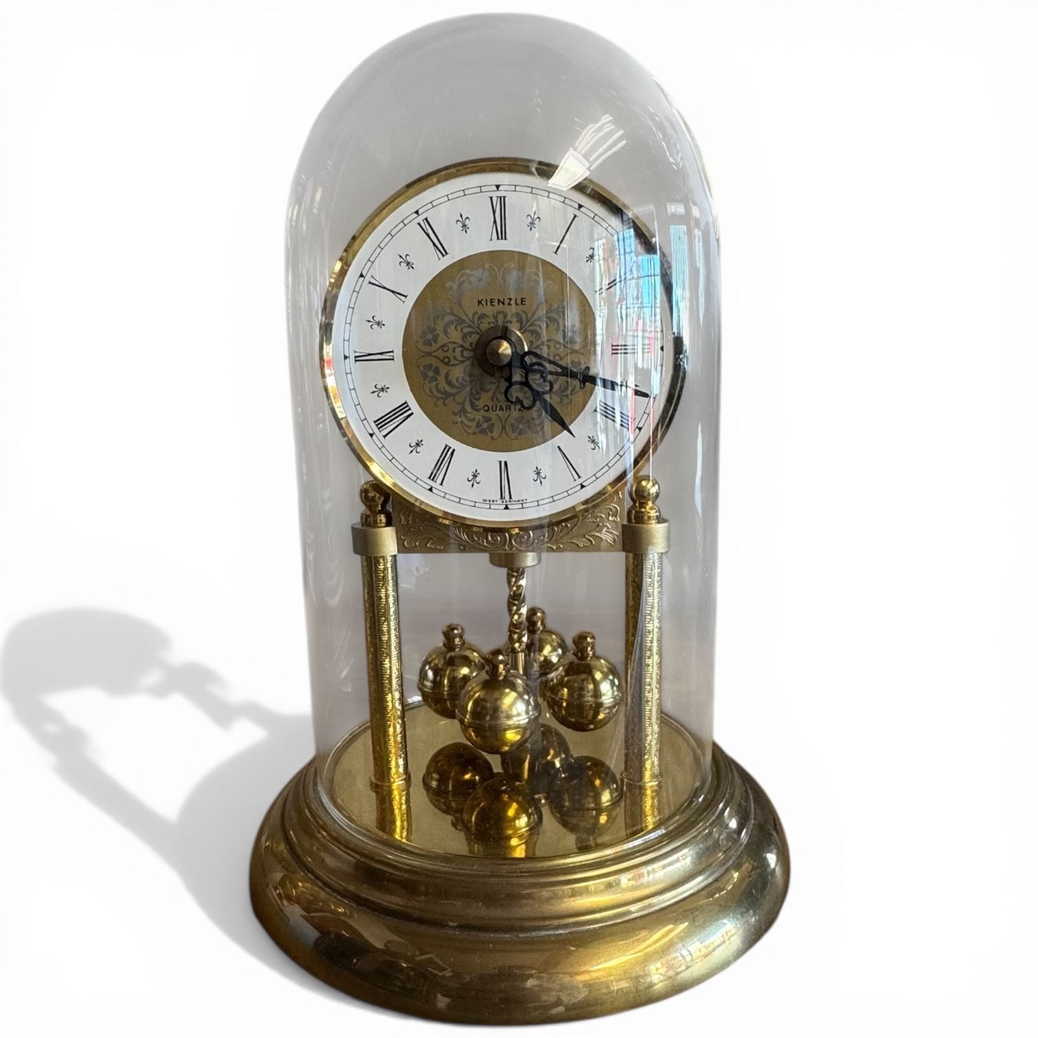 Lot 403 Kienzle West German Brass Anniversary Clock with Glass Dome (10" tall)