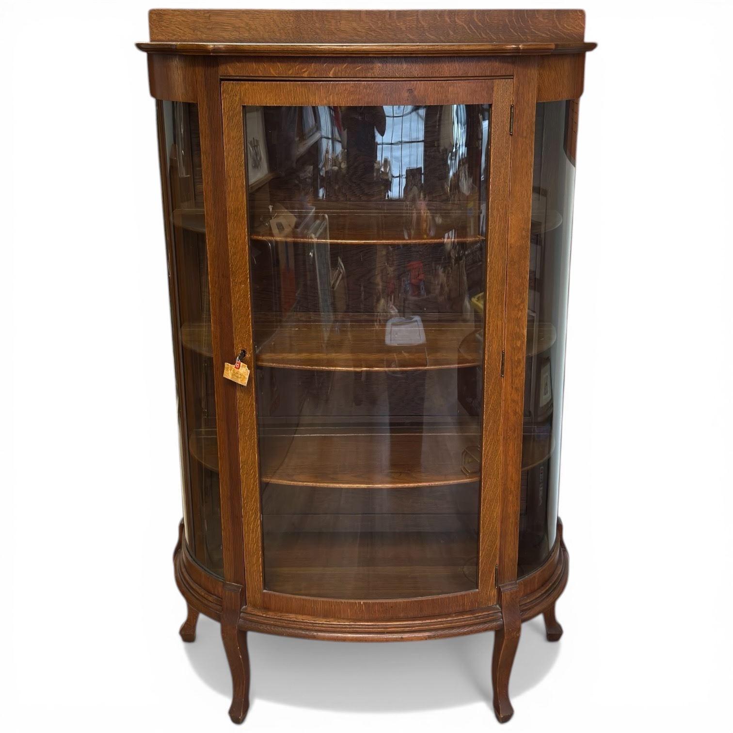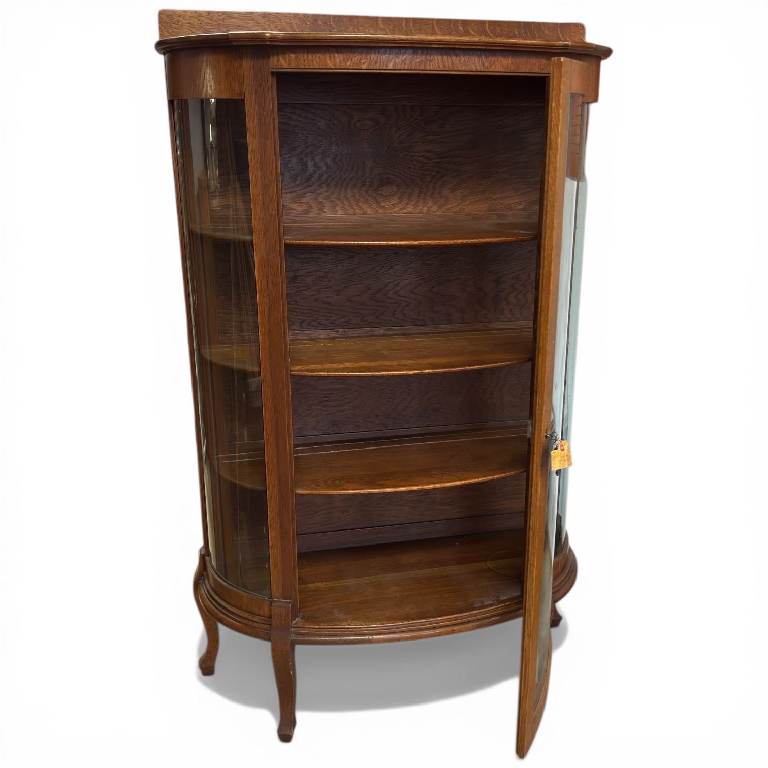 Oak Curved Glass Display Cabinet with Keys (16" x 36" x 59" tall)