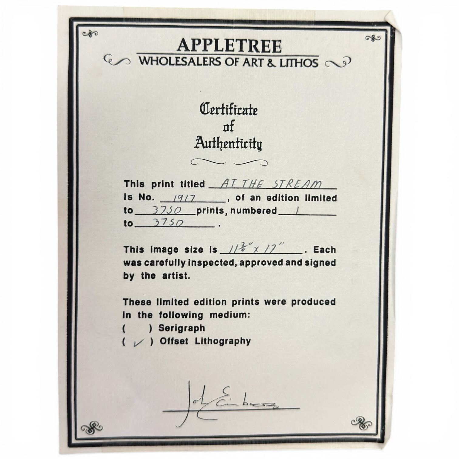 Lot 379a 1972 Lissa Calvert Ltd. Edition Pring "At The Stream" with COA on the Back #1917/3750 (Double matte