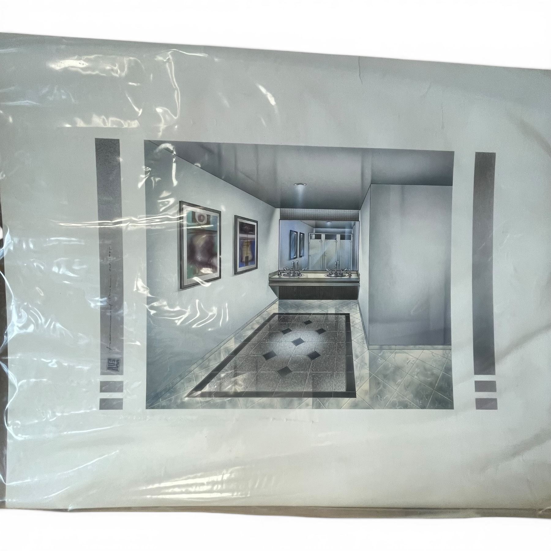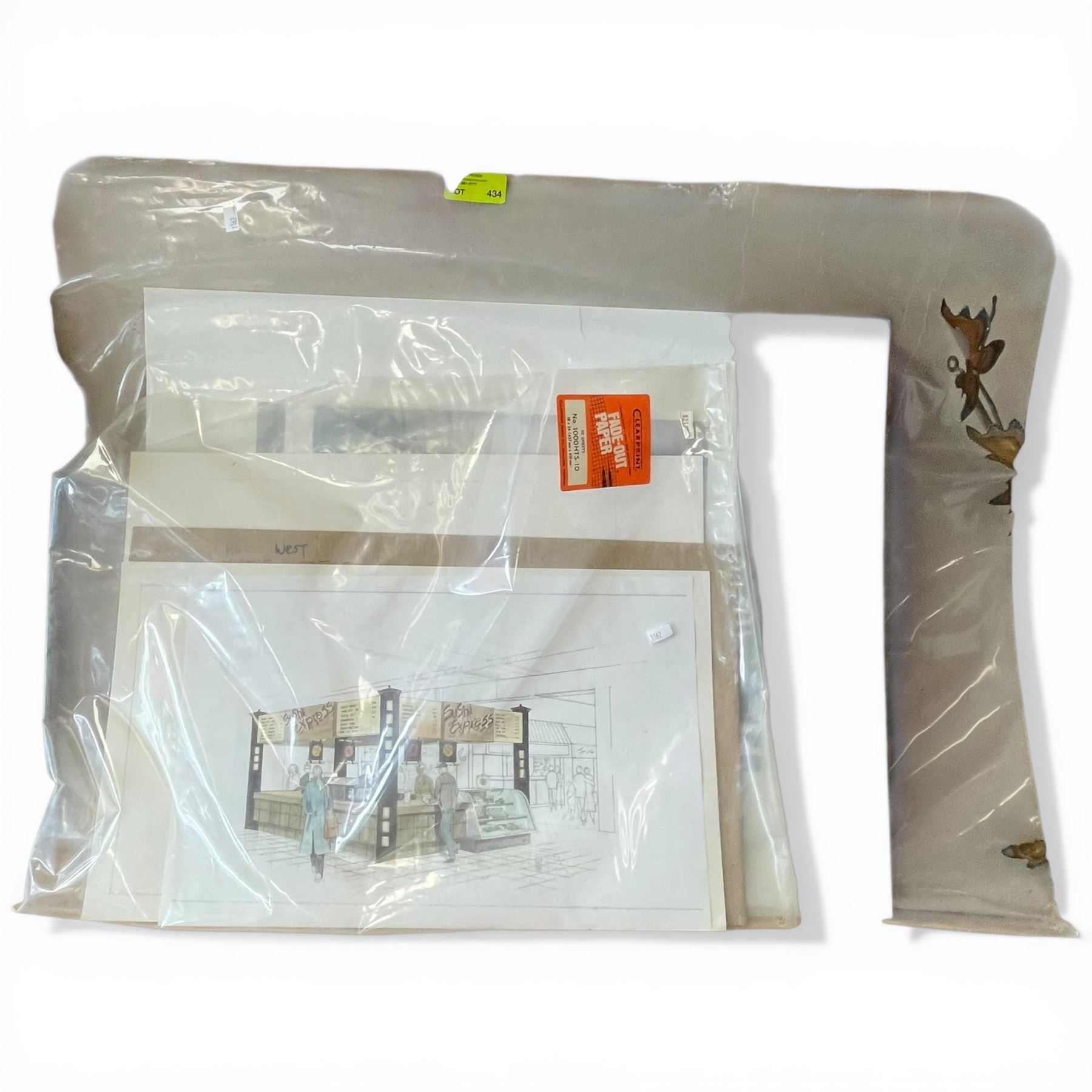 Lot 434 Architectural Rendering of a Sushi Stand and a Print of Room