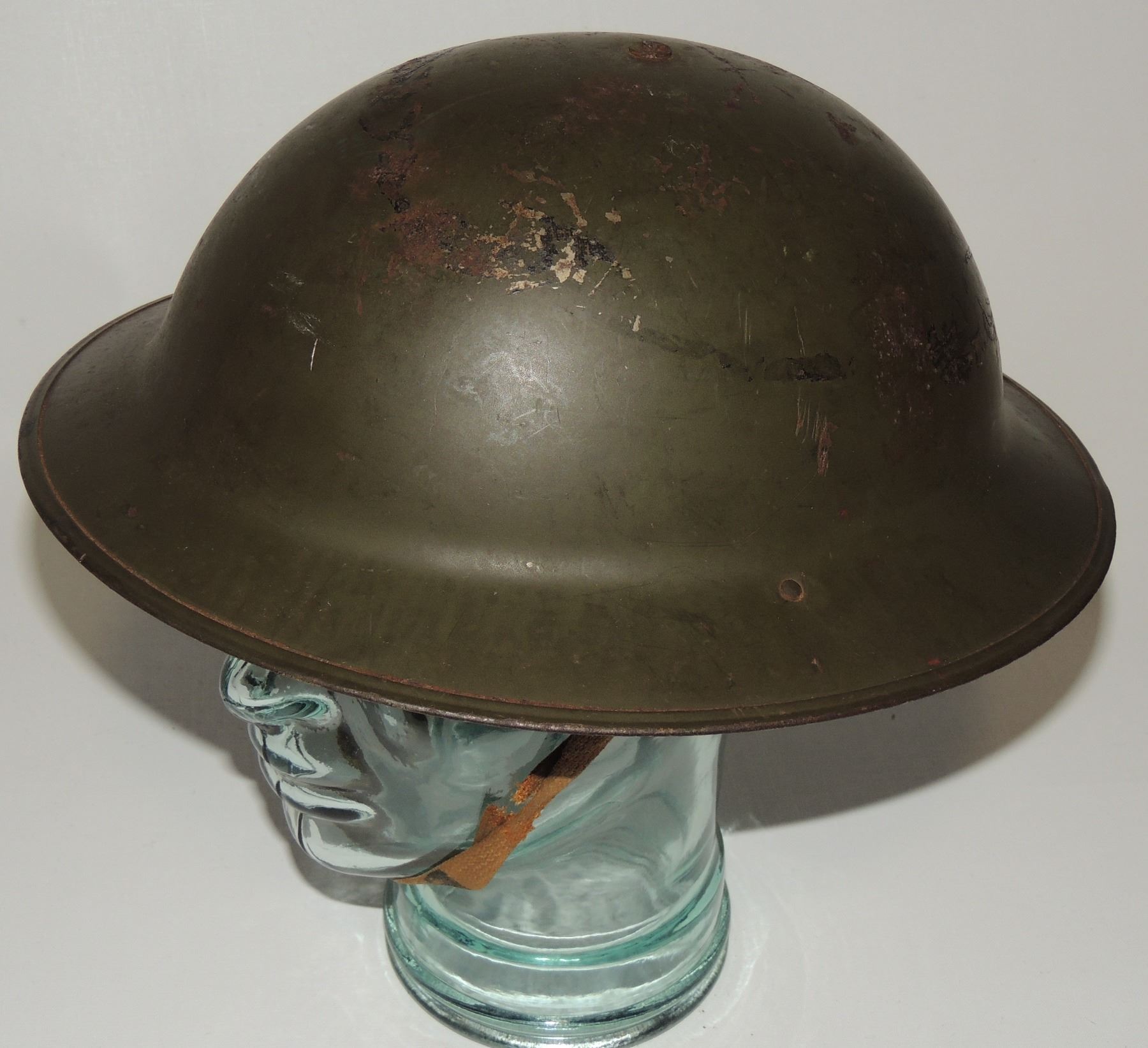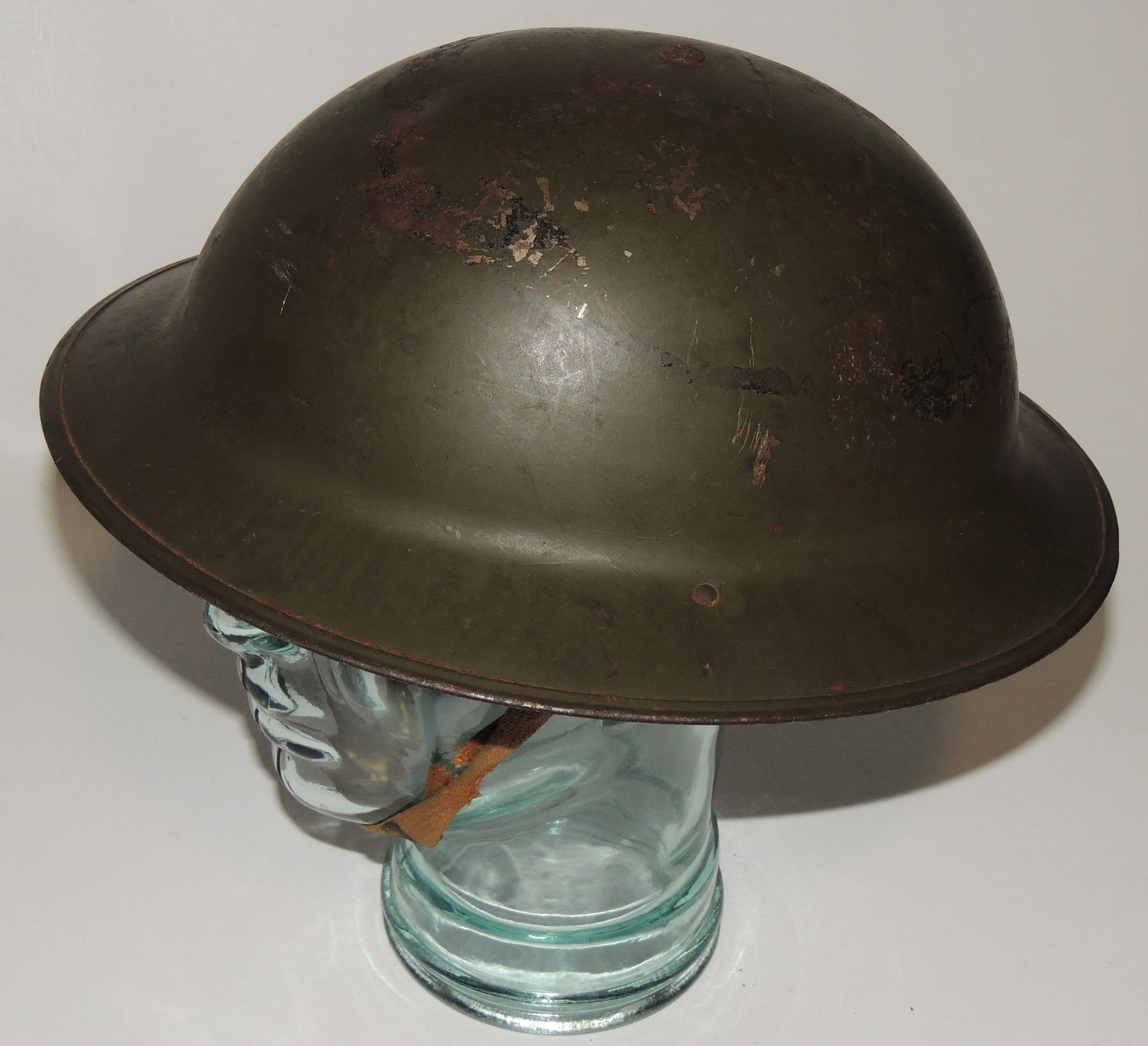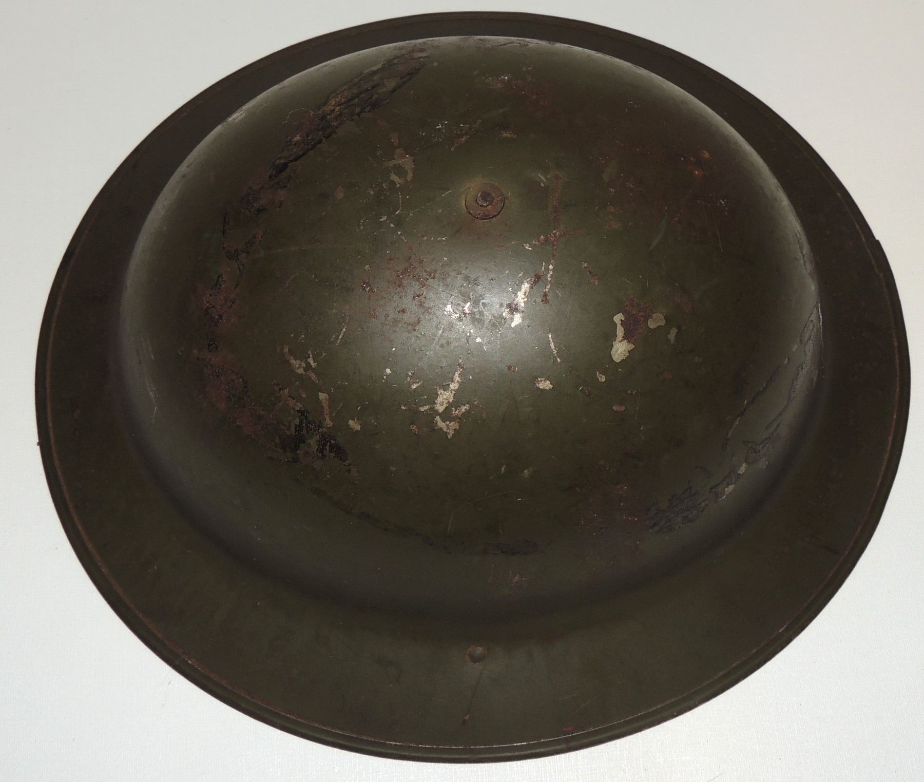 Steel Helmet similar to Canadian/British Brodie Helmet, with liner and chinstrap