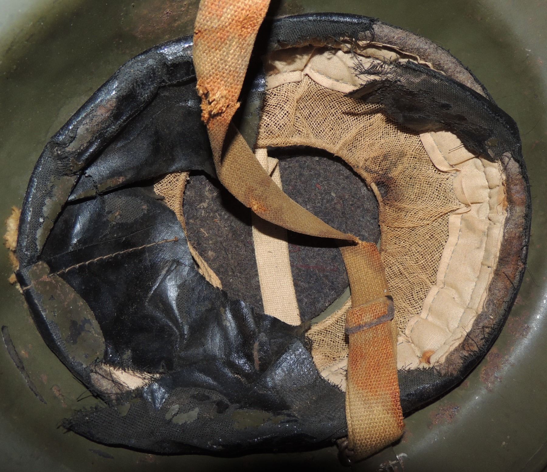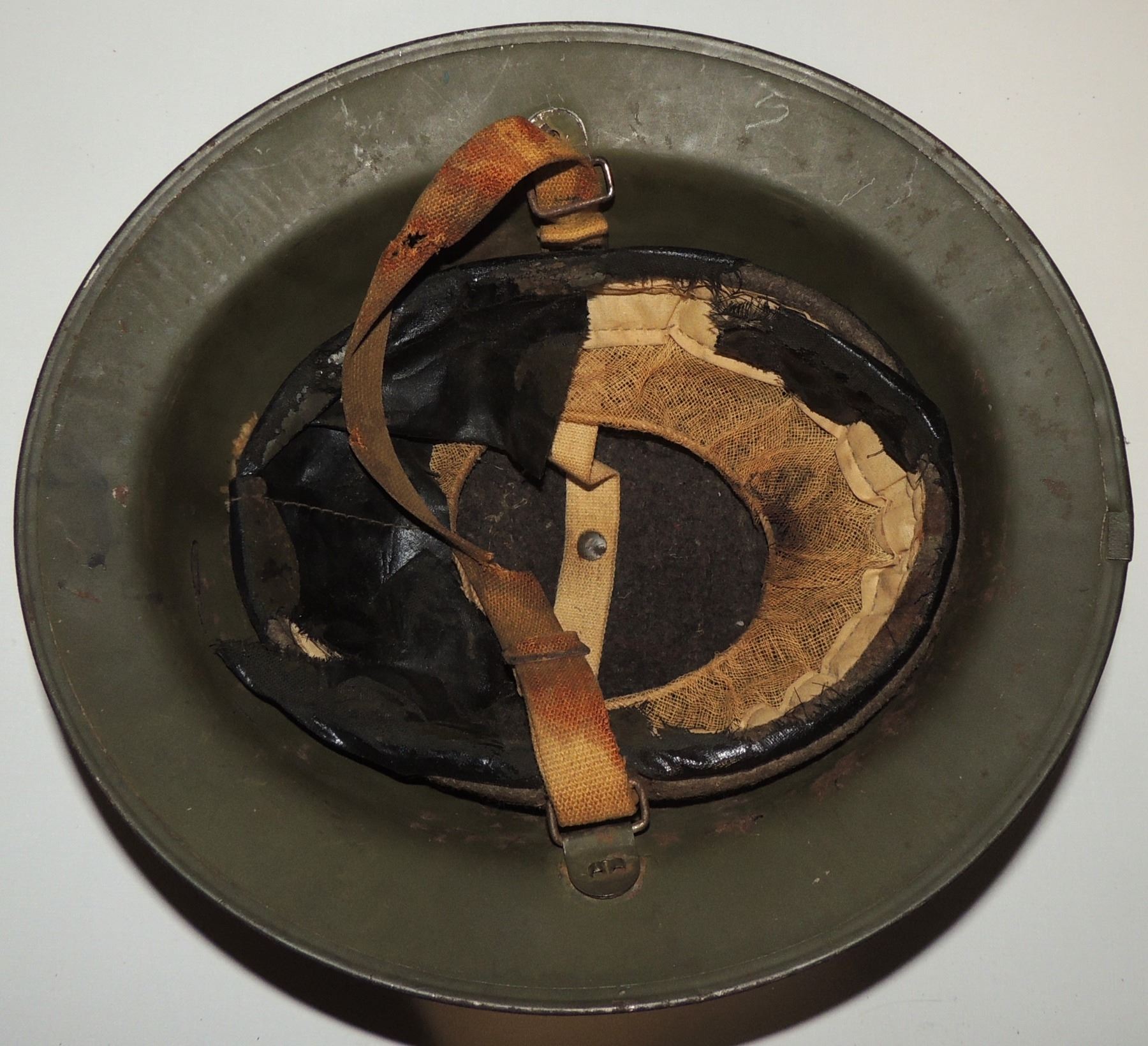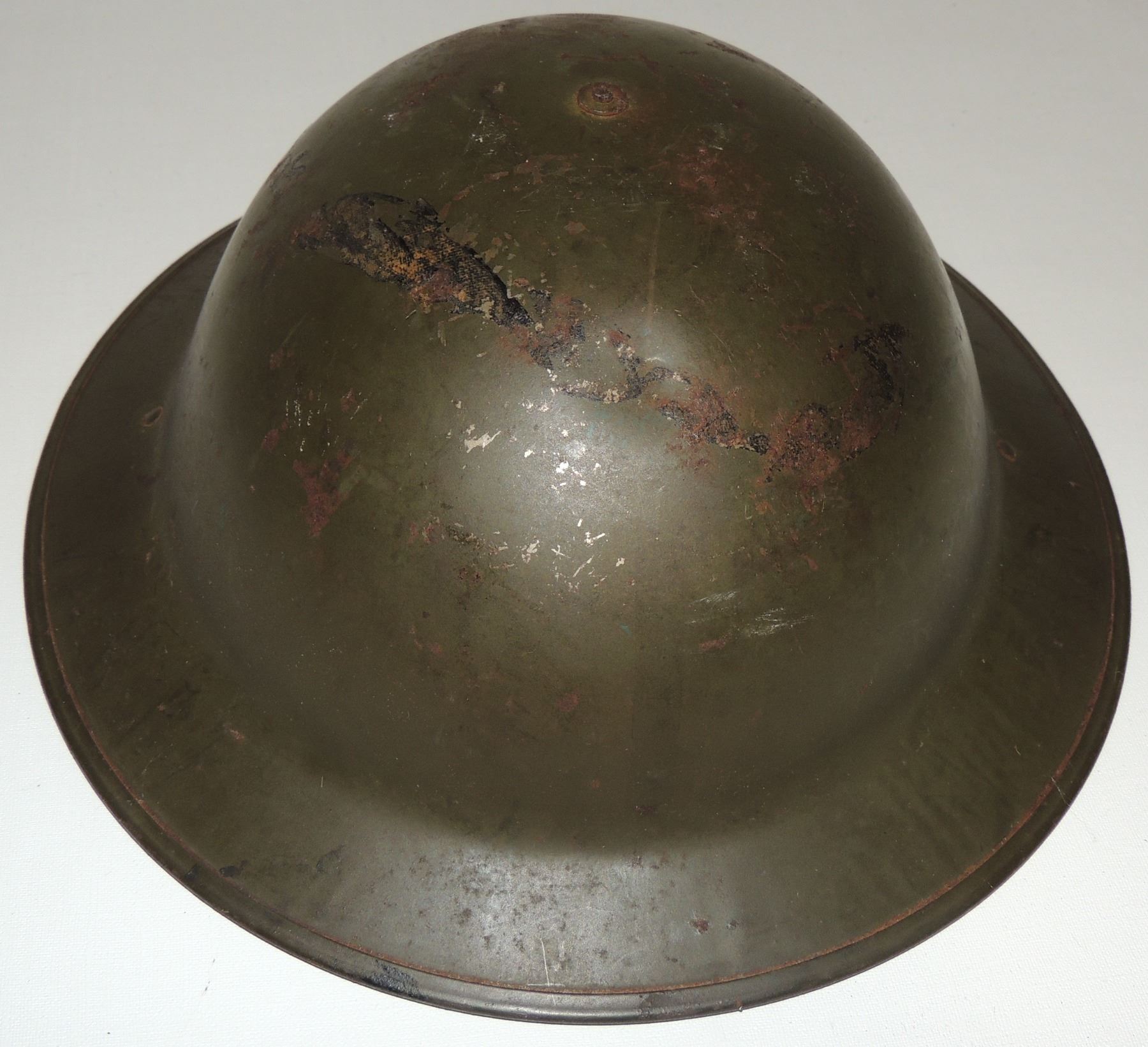 Steel Helmet similar to Canadian/British Brodie Helmet, with liner and chinstrap