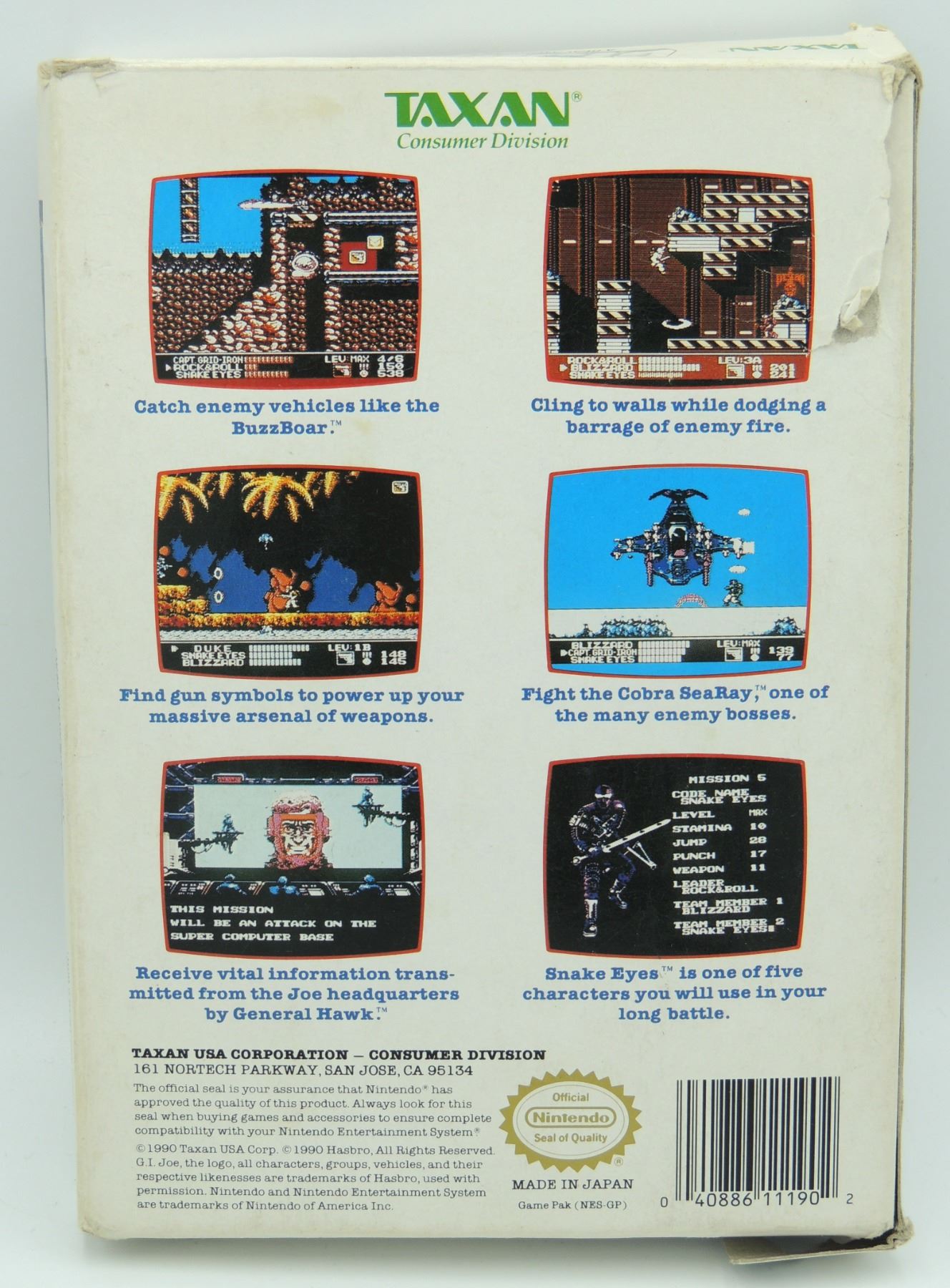CIB Complete in Box Tested & Working! Box has one flap removed and wear, game requires cleaning. Includes Manual Box and Game 1990 Hasbro Taxan G.I. Joe A Real American Hero. Nintendo Entertainment System Game