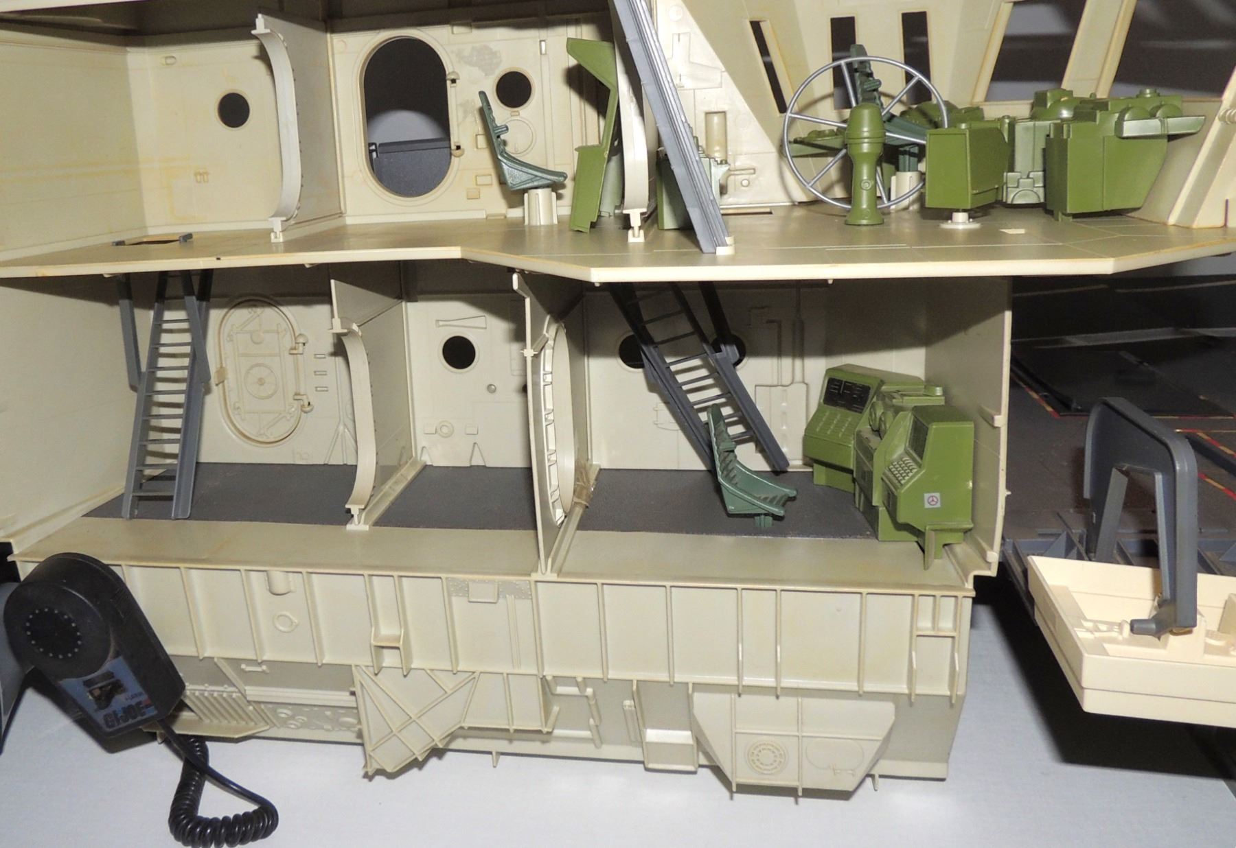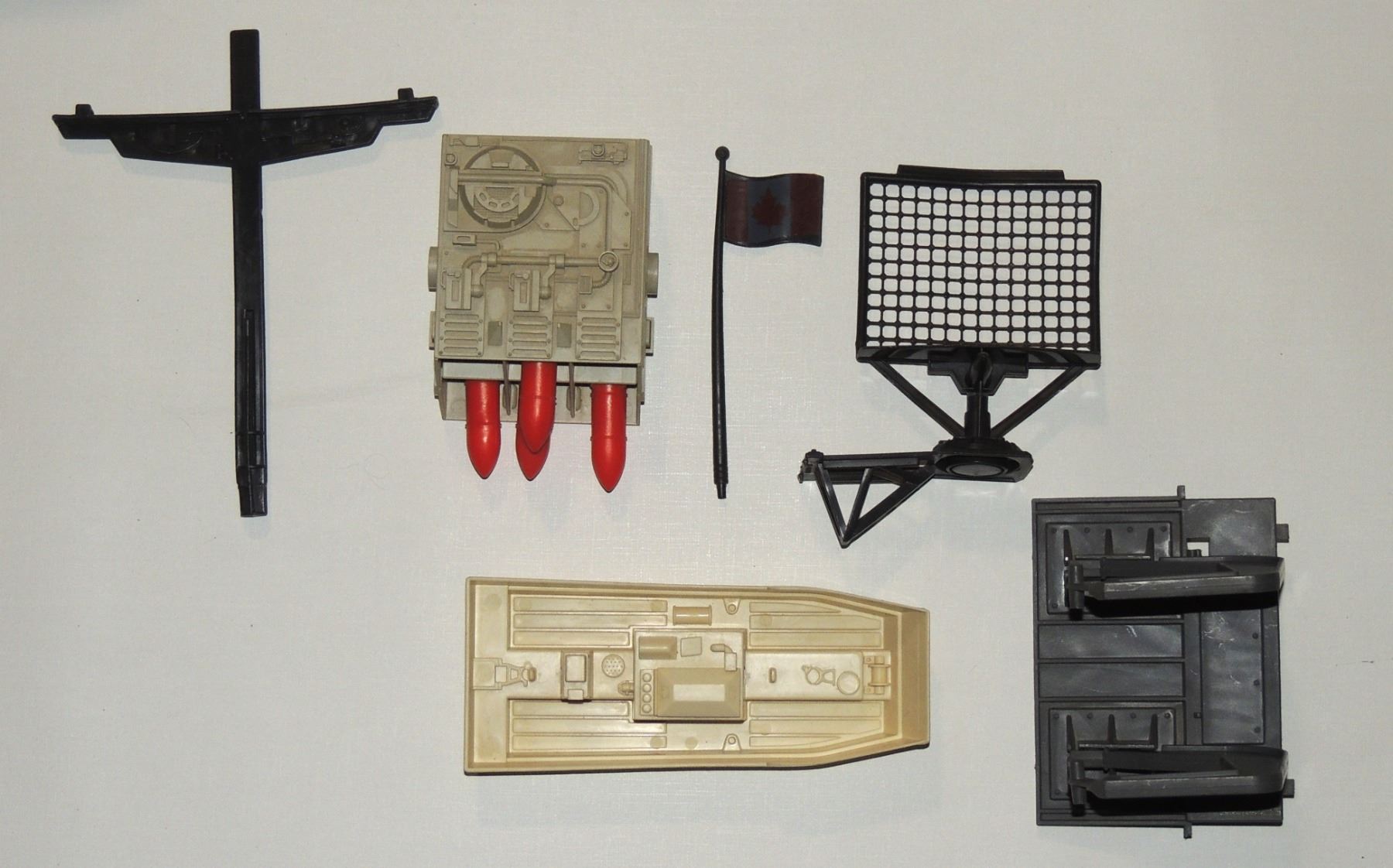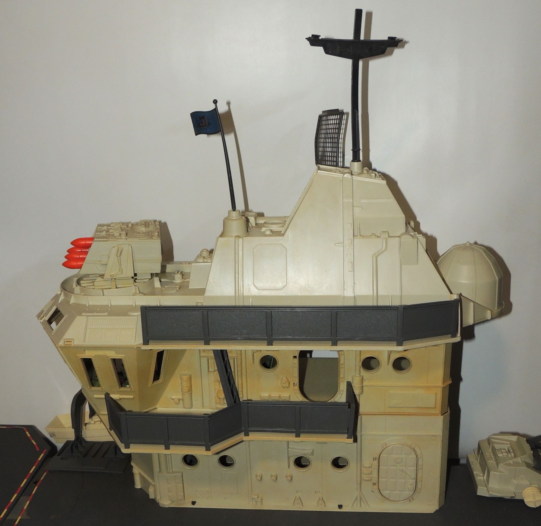 Rare Near Complete 1985 U.S.S. Flagg Aircraft Carrier. Includes Most pieces (including rare working megaphone, boat, fuel and tow vehicles), each piece hand cleaned, assembled and packed. Includes hard to find pieces, parts etc. Requires additional radar/antenna/cannon gun pieces, some wear to lower beams, etc etc etc GI JOE G.I. Joe A Real American Hero Hasbro