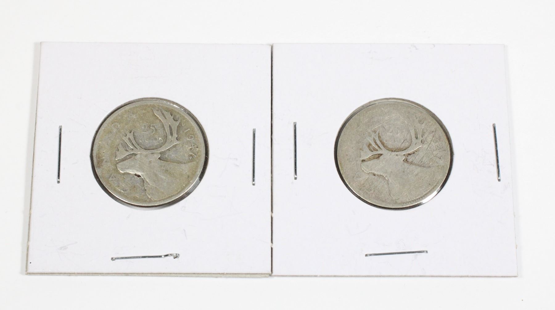 Lot of 2 1947 Silver Coin Quarter 25 Cents King George VI Canadian Currency