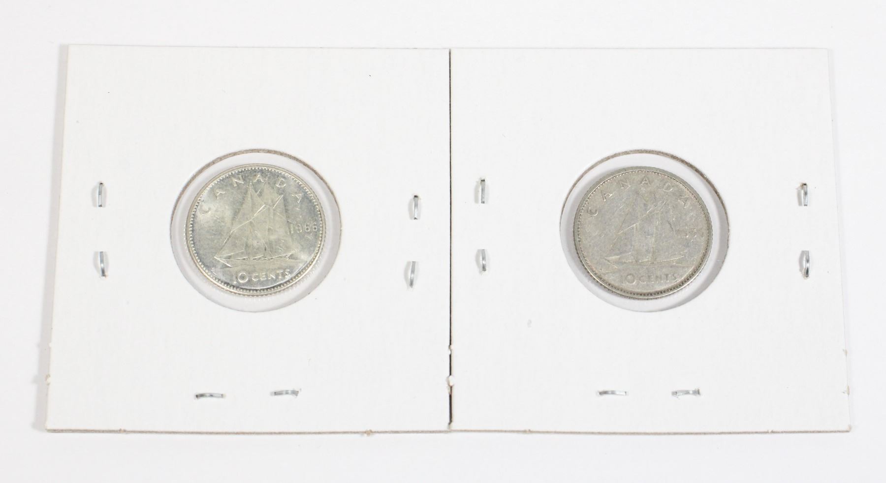 Lot of 2 20th Century Queen Elizabeth II Canada Canadian Silver Currency Dime 10 Cent Coin Lot of 2 1966