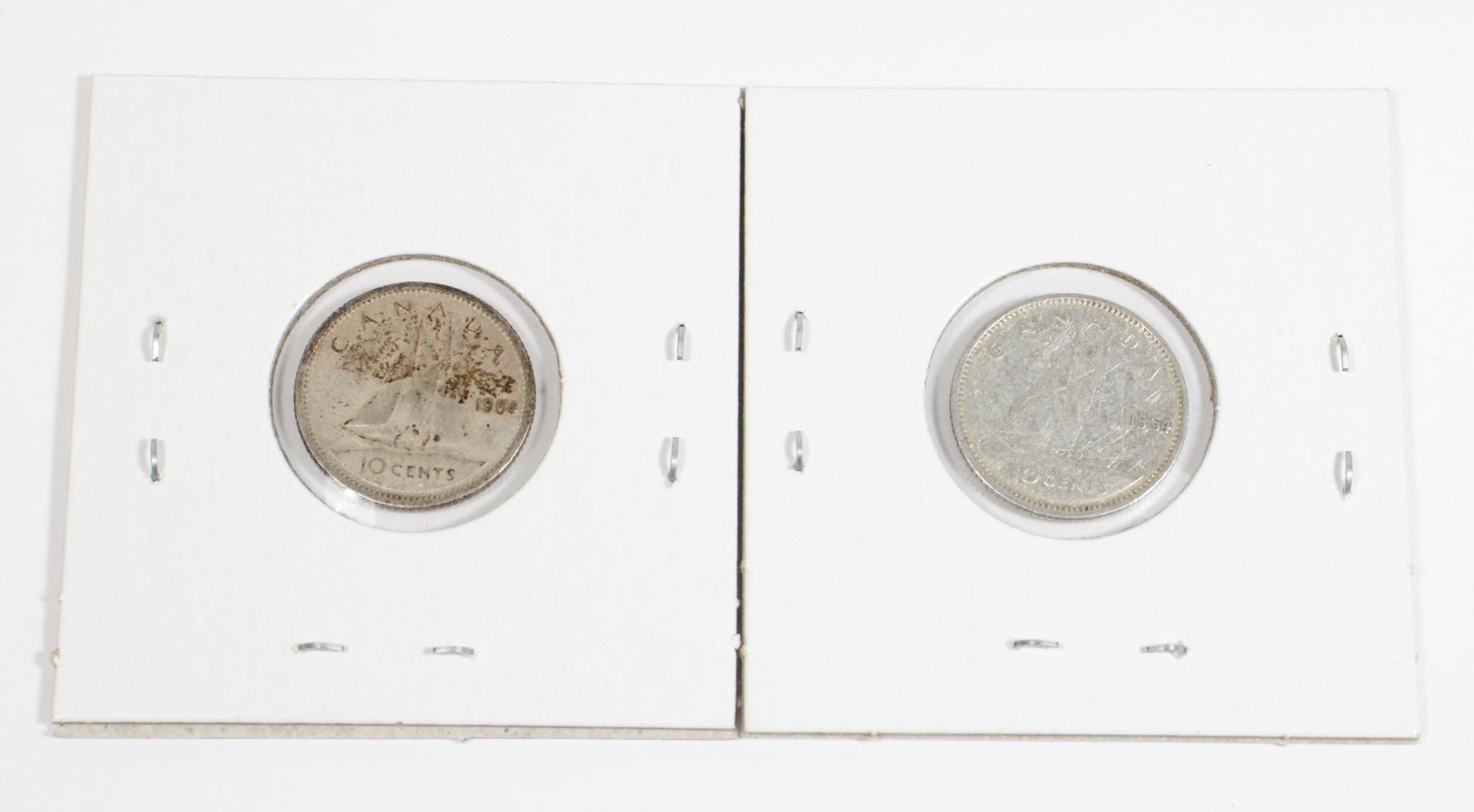 Lot 41 #41 1954 Canada 10 Cent Silver Dime Lot of 2