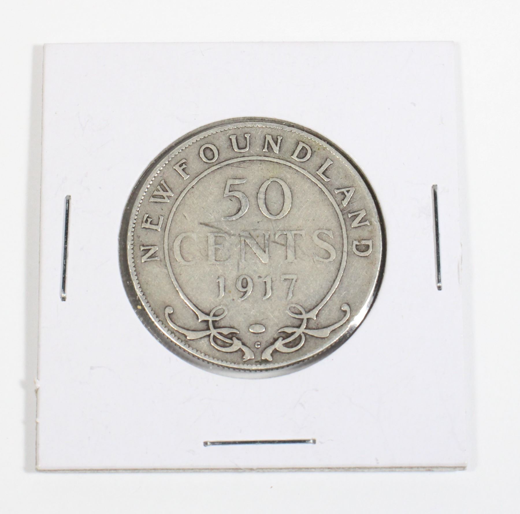 World War One Era Dominion of Newfoundland British Empire 50 Cents Silver Coin King George V 1917