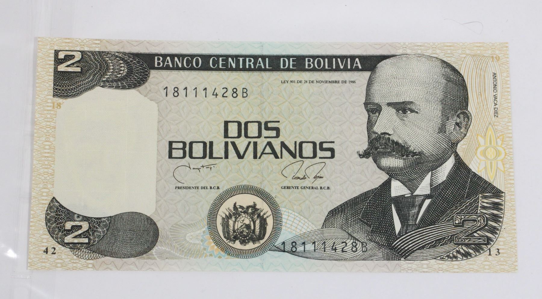 Lot 81 #81 1986 Bolivia 2 Bolivianos Bill Banknote