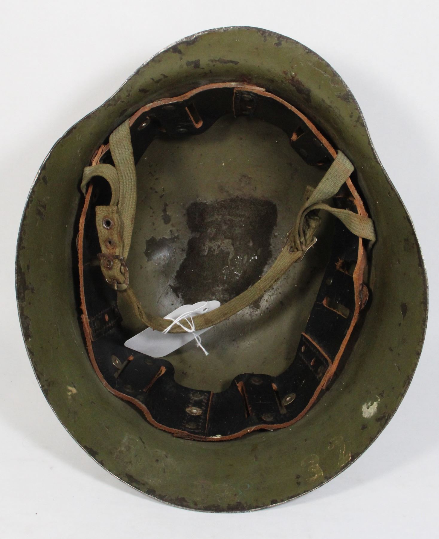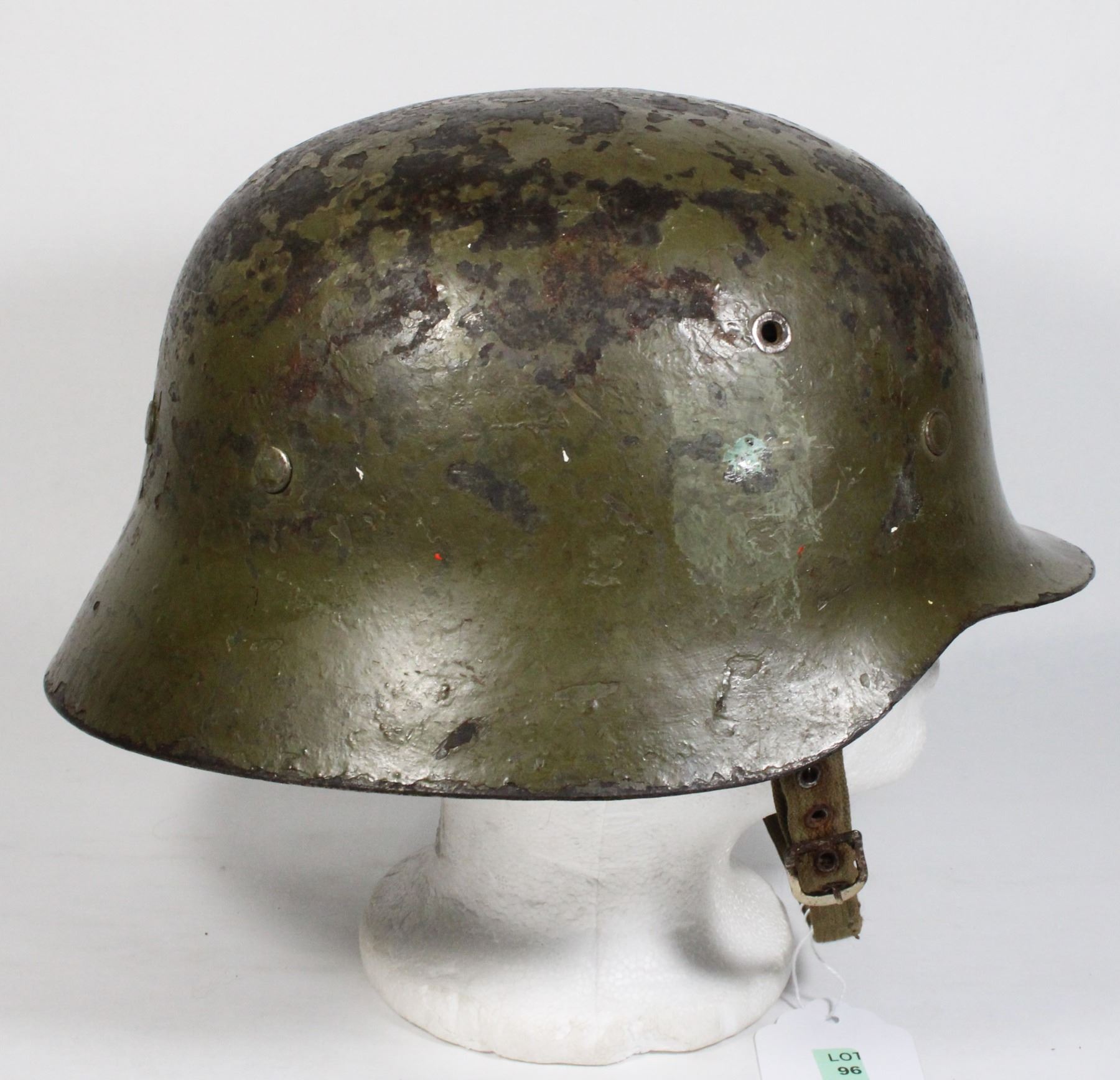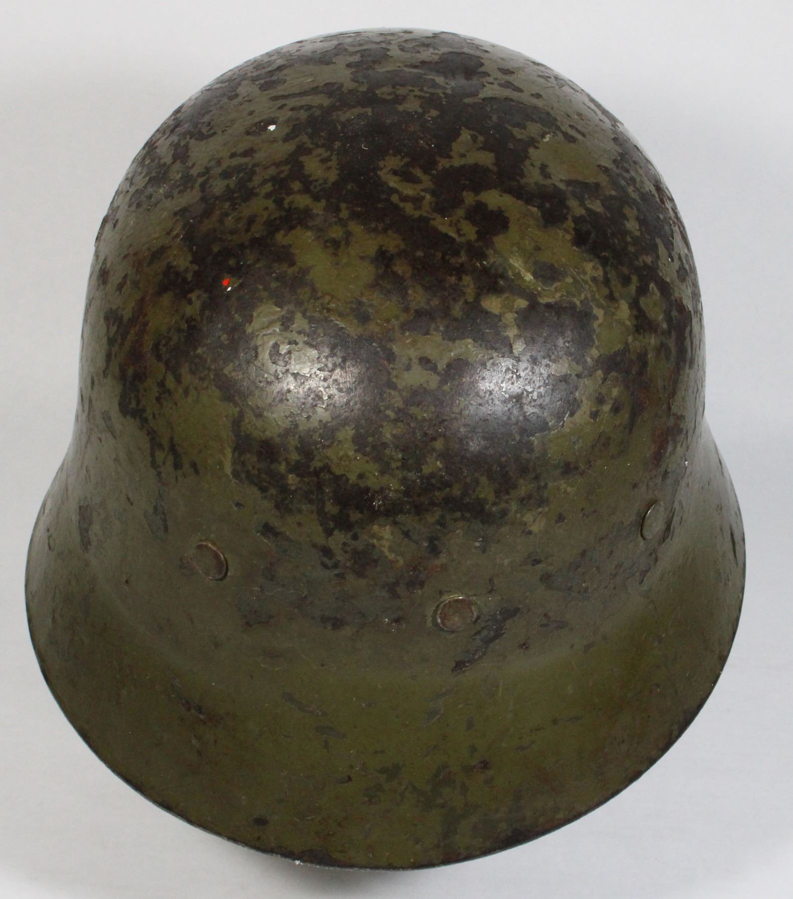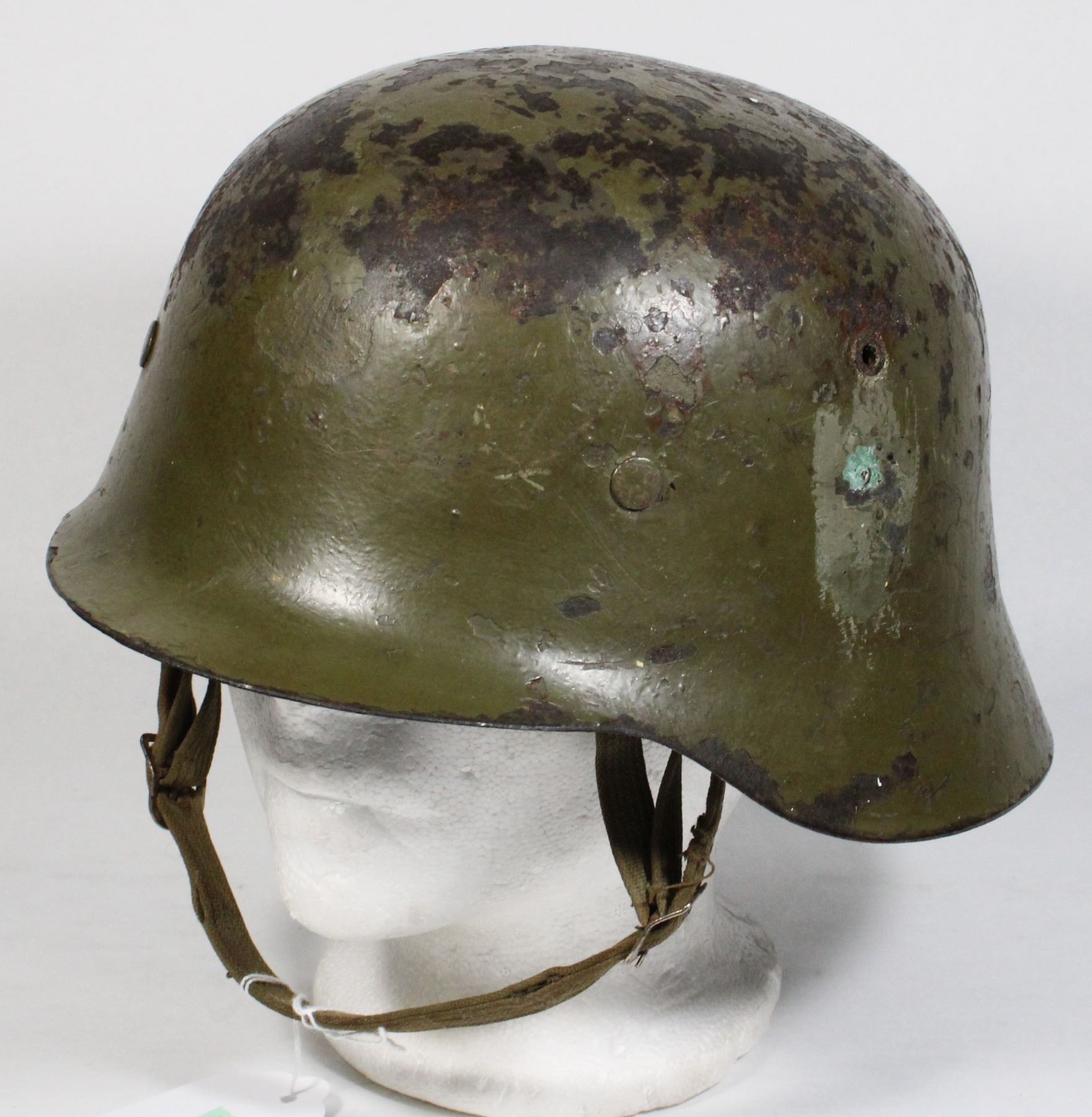 Spanish Military helmet, includes replacement liner and chinstrap, signs of wear on paint. World War Two Spain Spanish Military