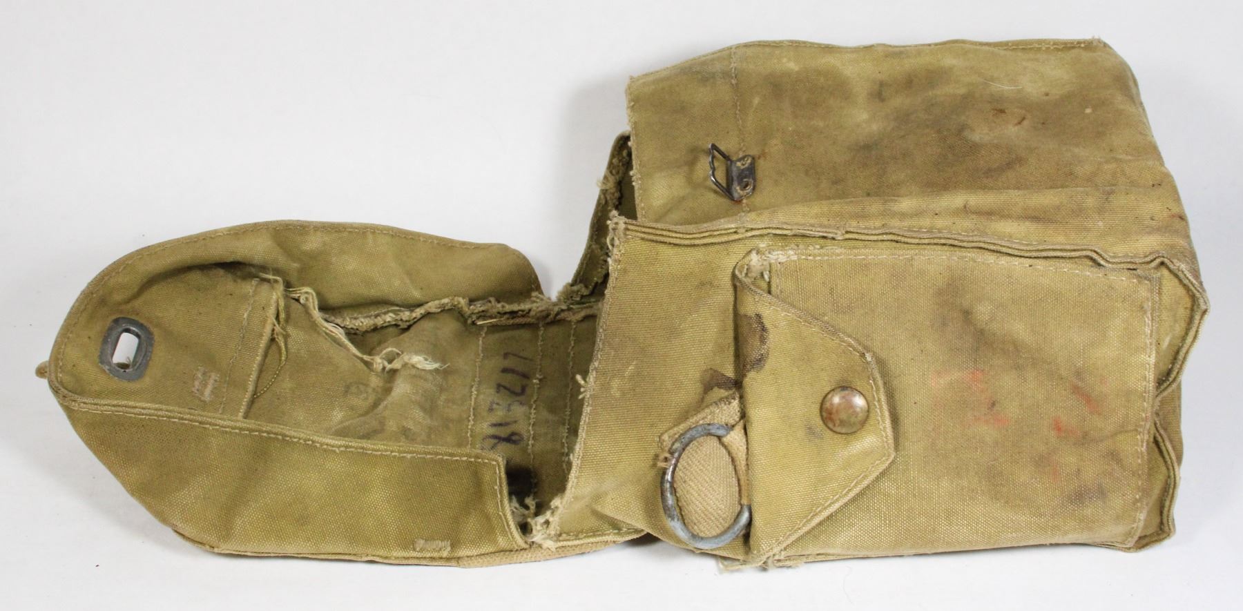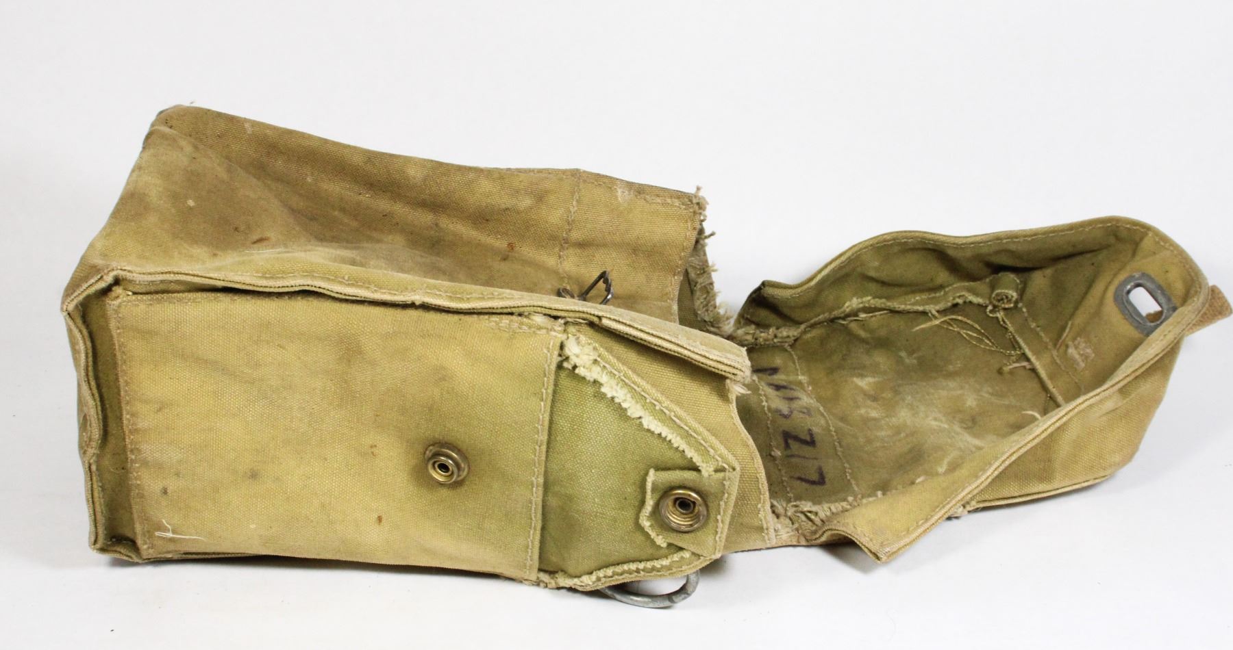 Lot 114 #114 WW2 Canadian Khaki Gas Mask Bag C->