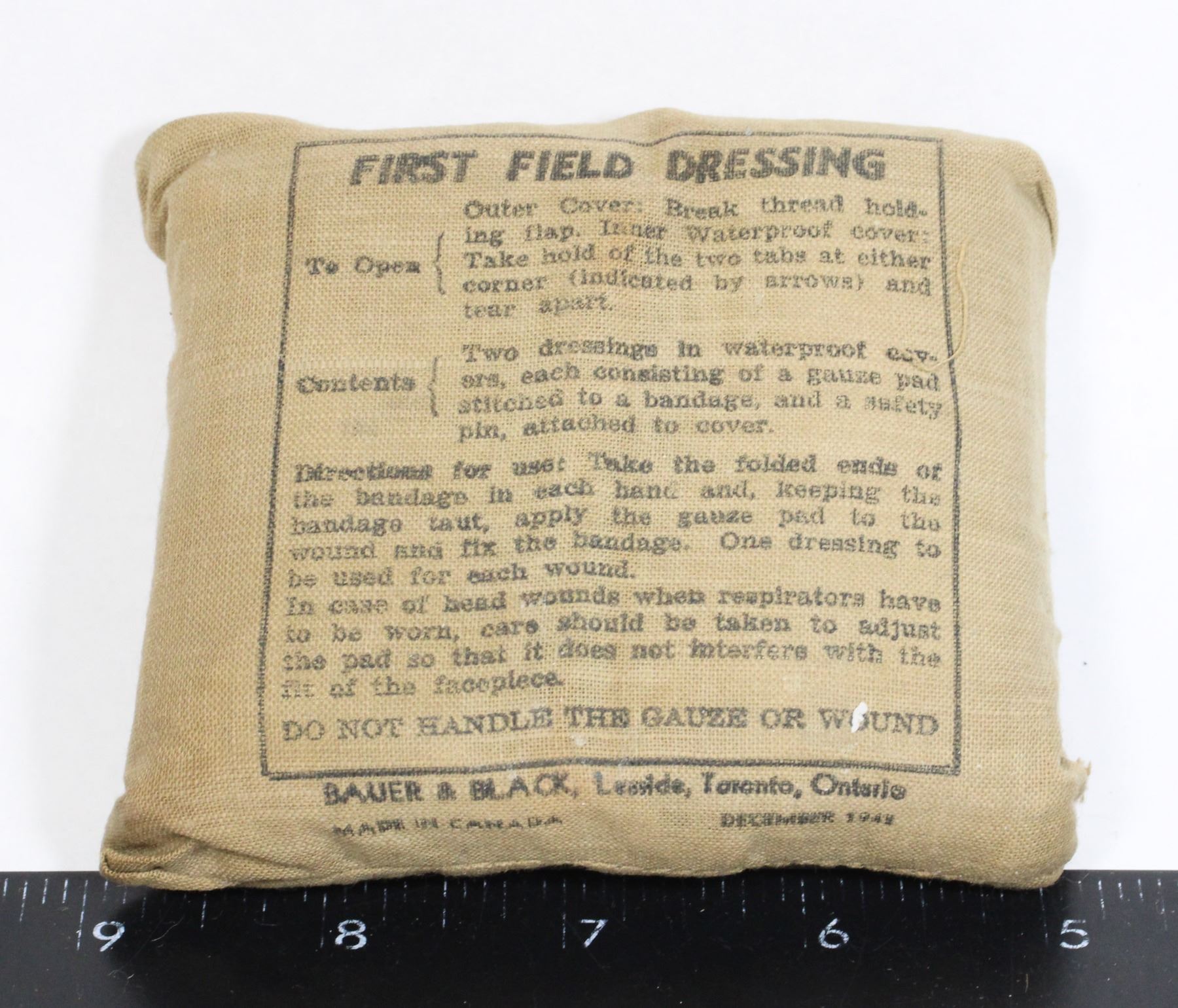 Medium Size WW2 Canadian First Field Dressing December 1942 Allied Forces Military Equiptment
