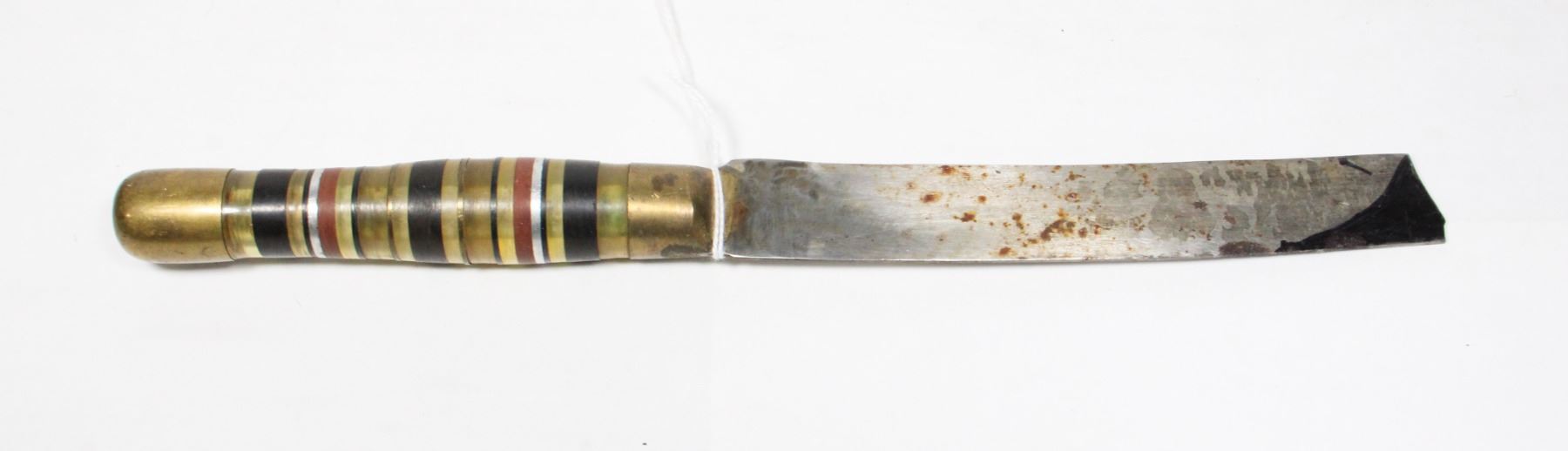 Handle Made from Aircraft bakelite parts, brass end with custom blade. World War Two Allied made item