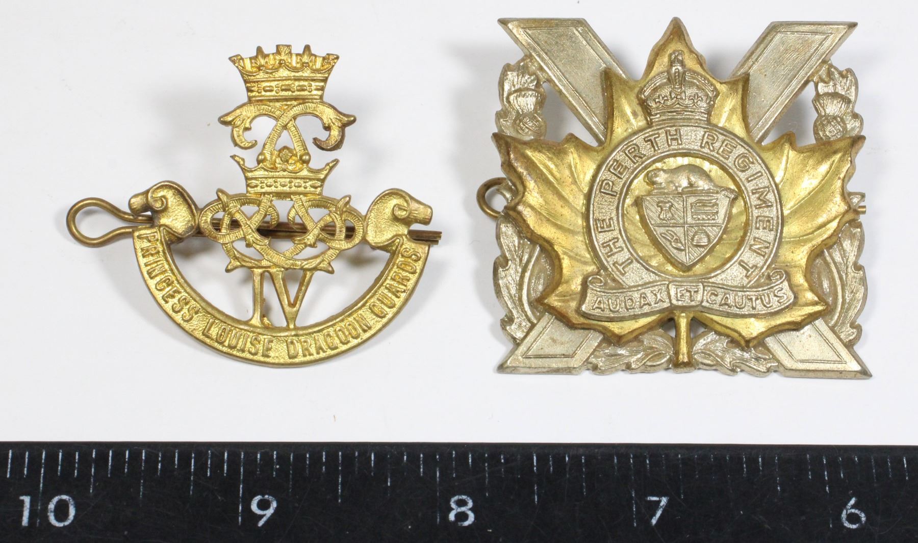 Lot 156 #156 Pair WW2 Canadian Cap Badge Perth Regiment