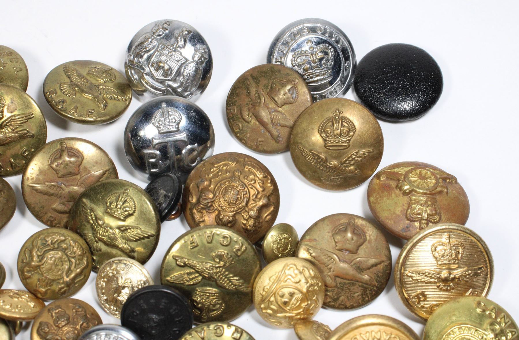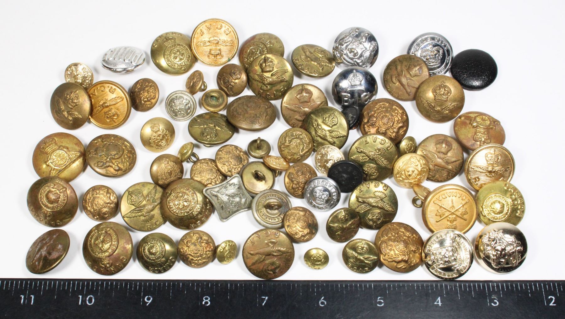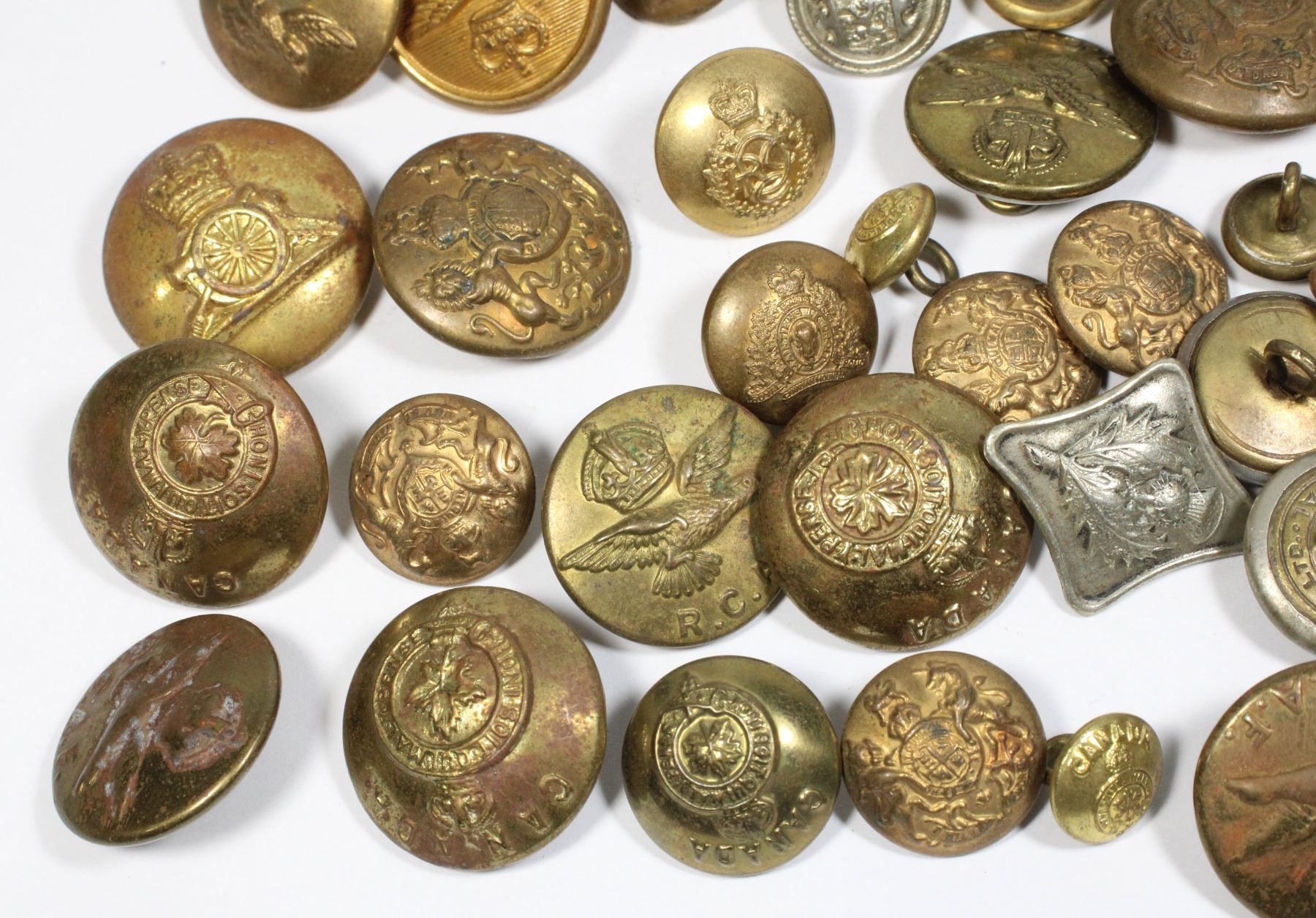 Lot includes British Canadian and Assorted buttons, assorted eras types etc