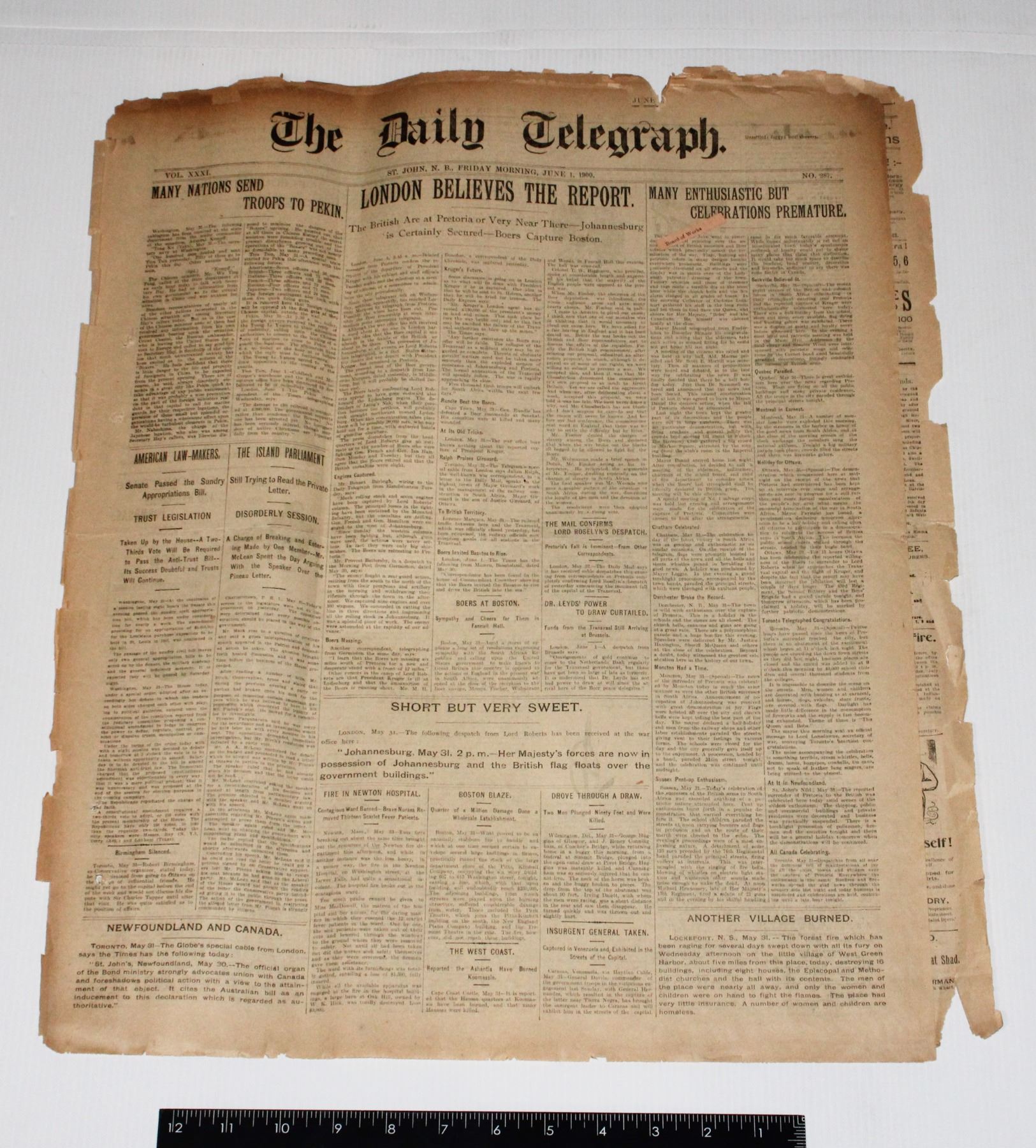 Lot 239 #239 Boer War Newspaper June 1st 1900 Telegraph