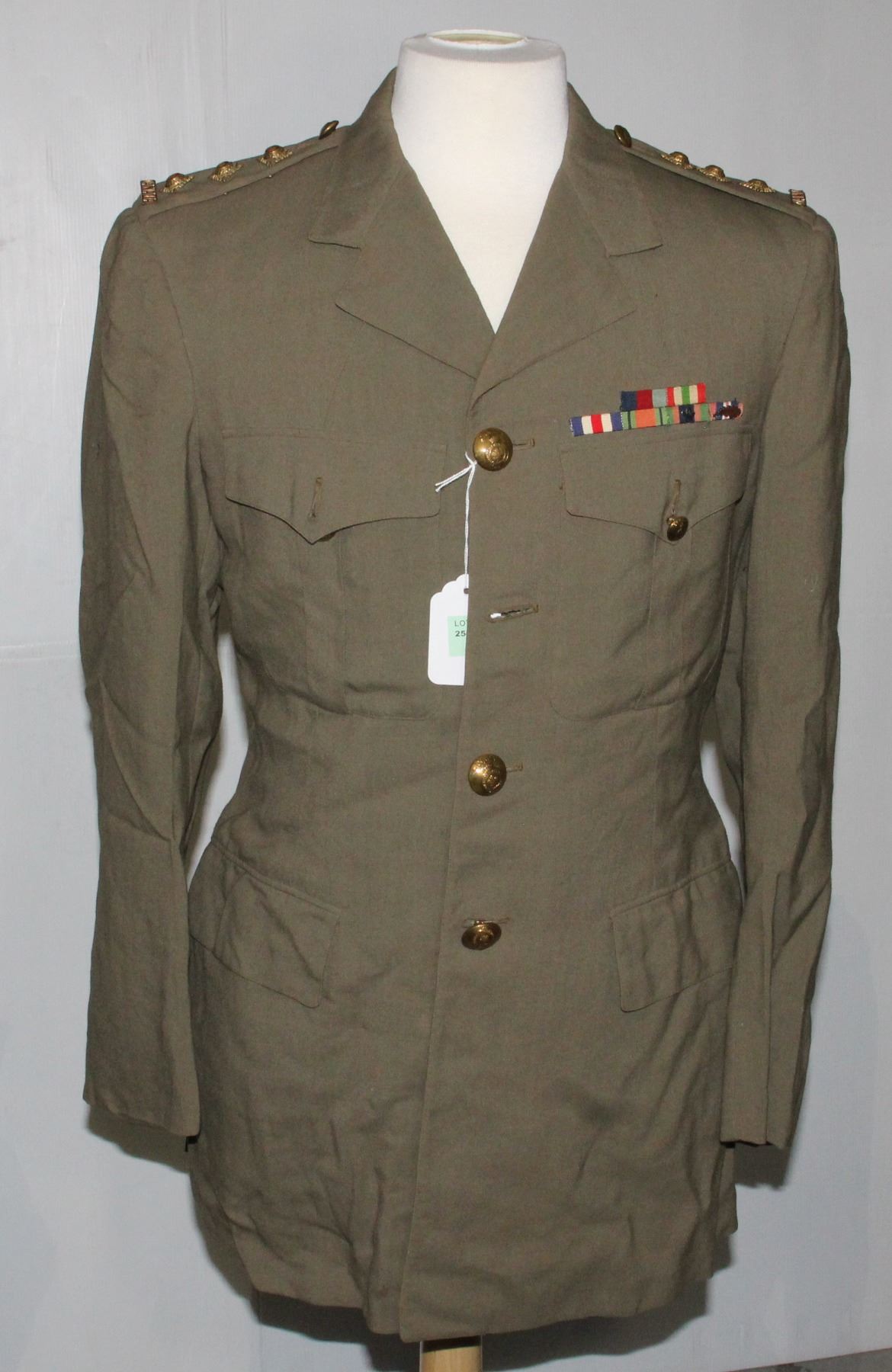 Includes WW2 Medal Bar with Mention in Despatches Oak Leaf, buttons- interior unmarked. Canadian Allied Forces Uniform