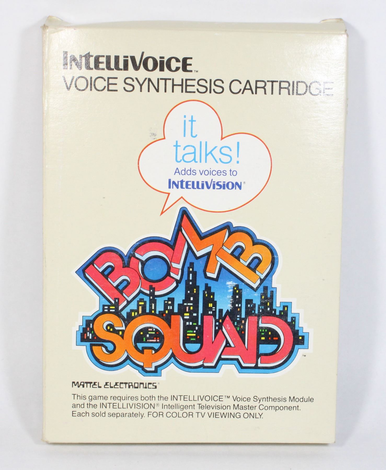 Intellivision Voice Synthesis Cartridge Game CIB Complete in Box with game, manual and 2 controller overlays. Intellivision Mattel Electronics 1980's Video Game