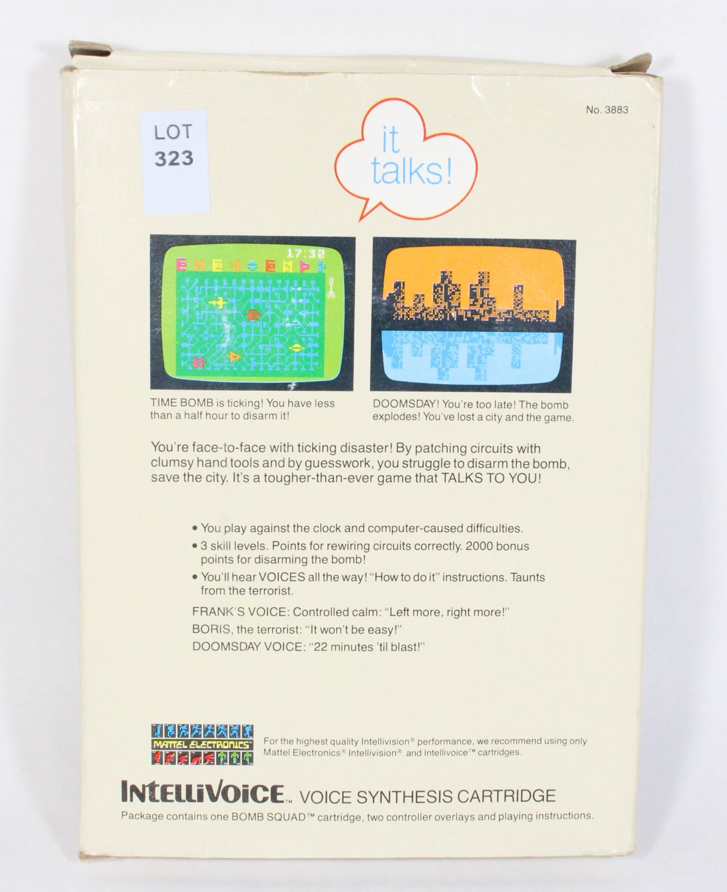 Lot 323 #323 Intellivision Game Tron Bomb Squad CIB