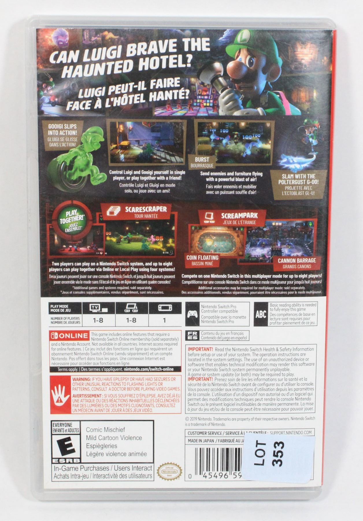 Lot 353 #353 Nintendo Switch Luigi's Mansion 3 CIB