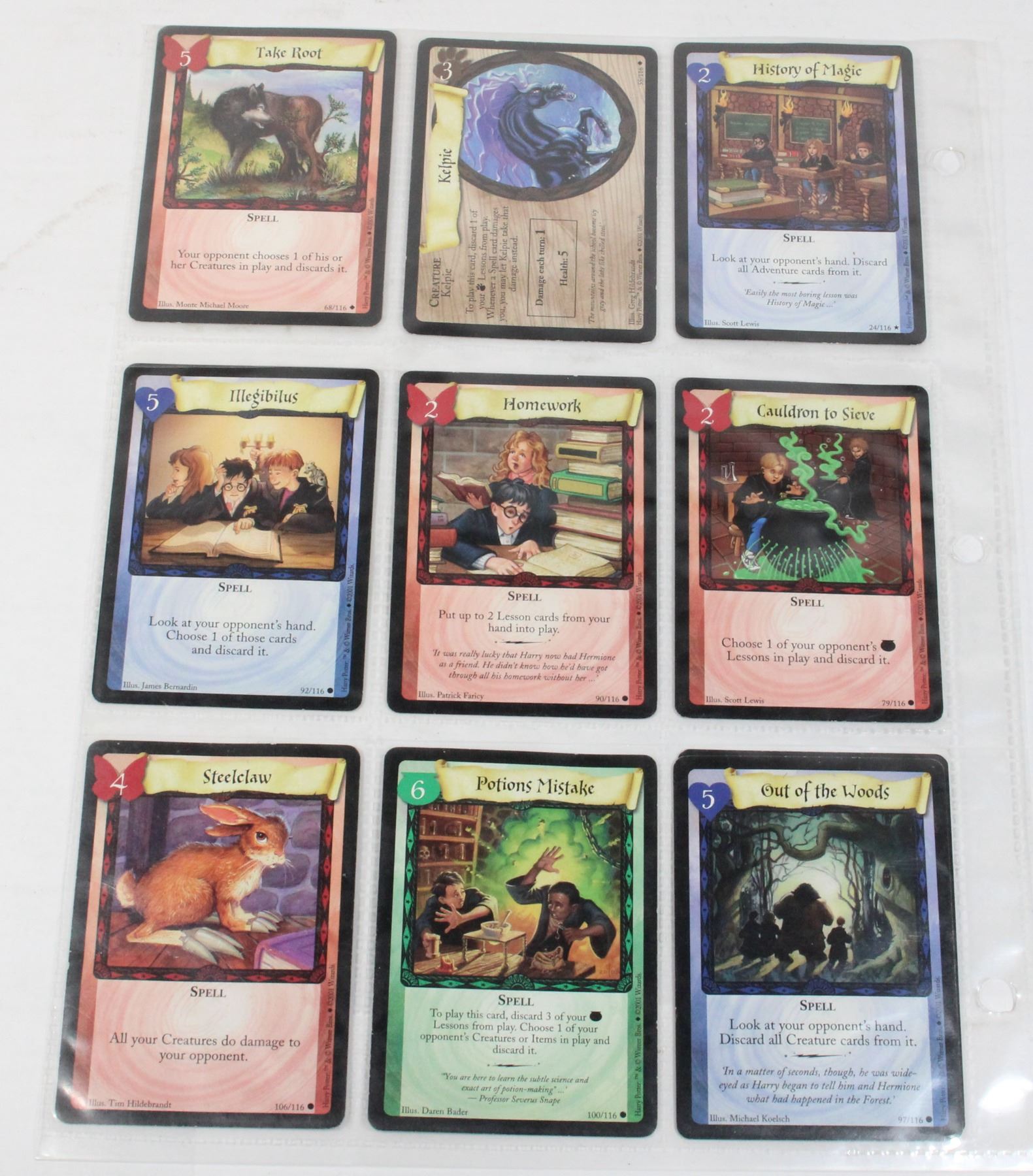 Harry Potter Trading Card Game Lot of 9 Assorted Cards in plastic card page 2001 Wizards