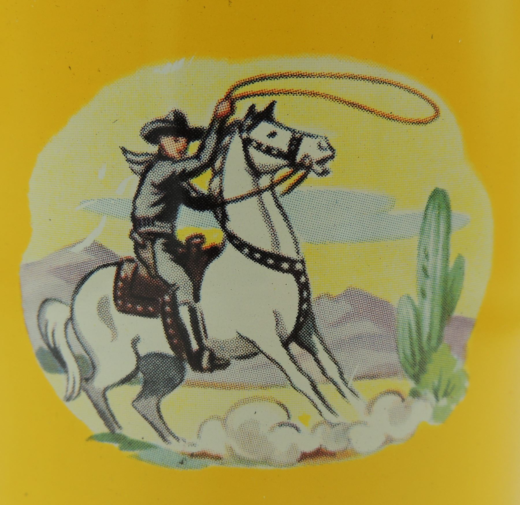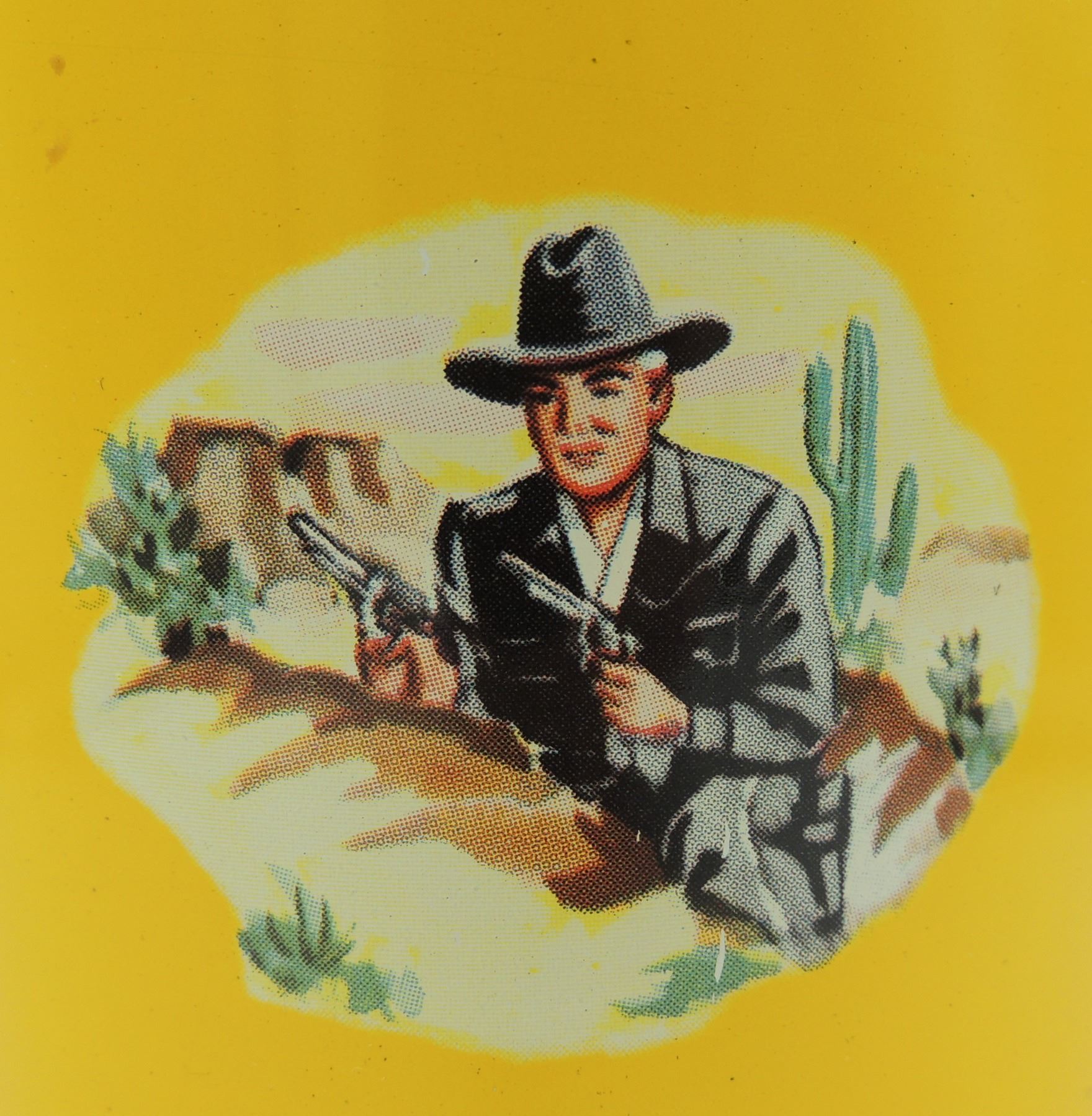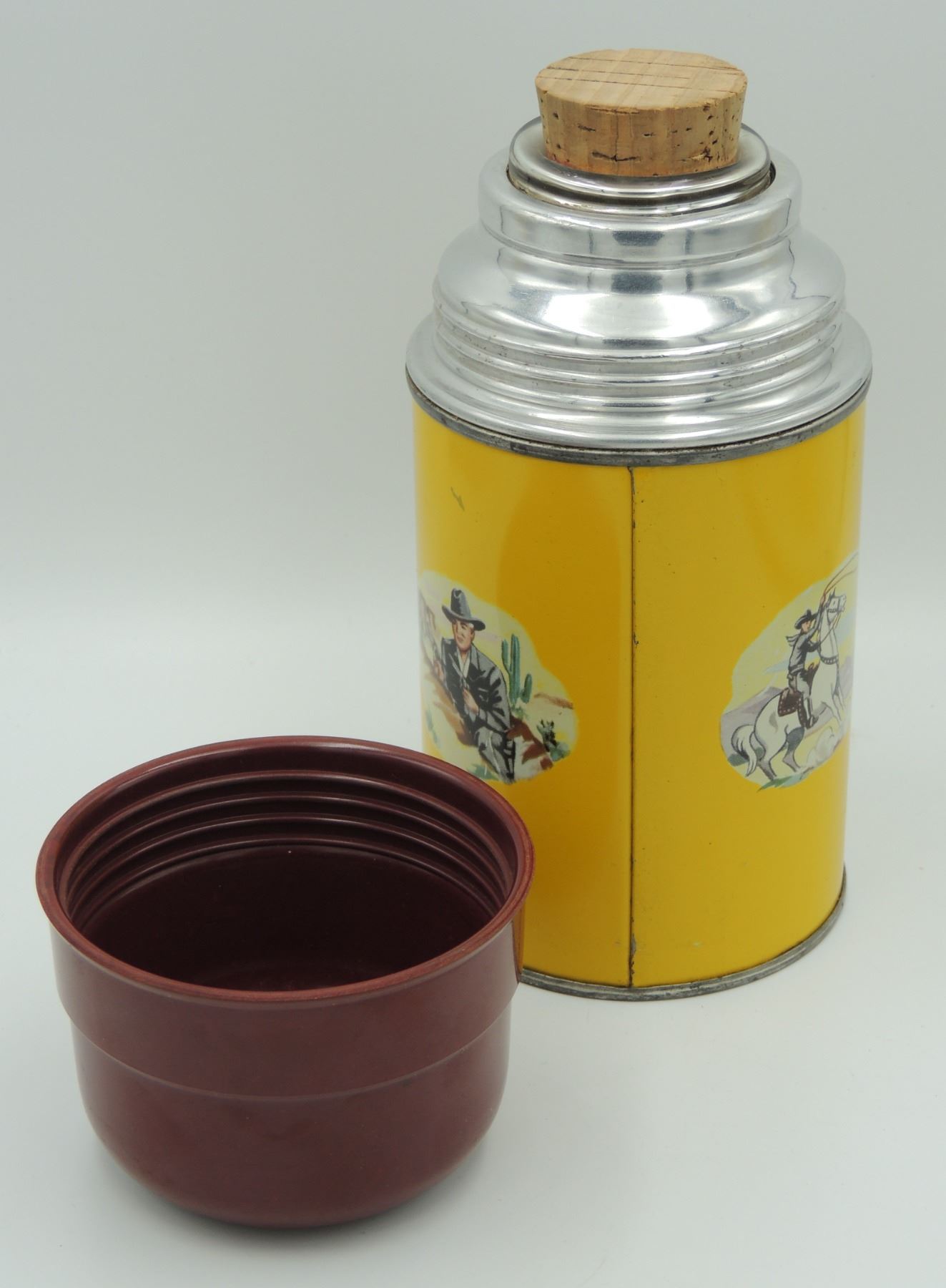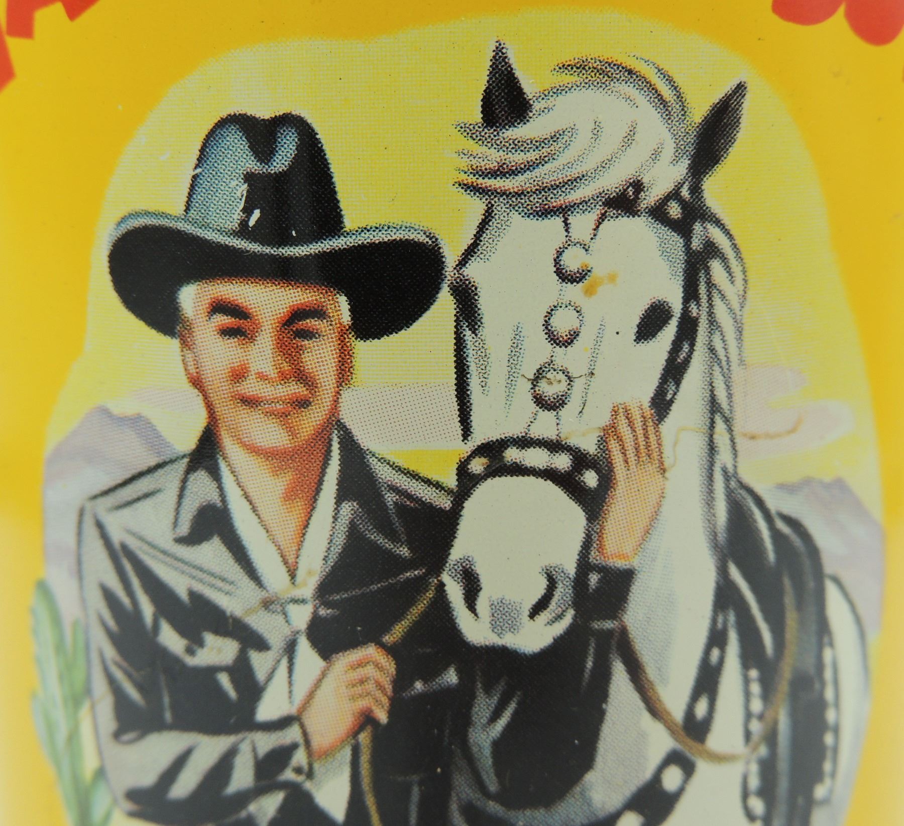 Complete with Thermos, overall good condition. Produced by Aladdin Industries Toronto Canada in 1950. 1950's Childrens Radio + TV Show Wild West Themed Lunch Box