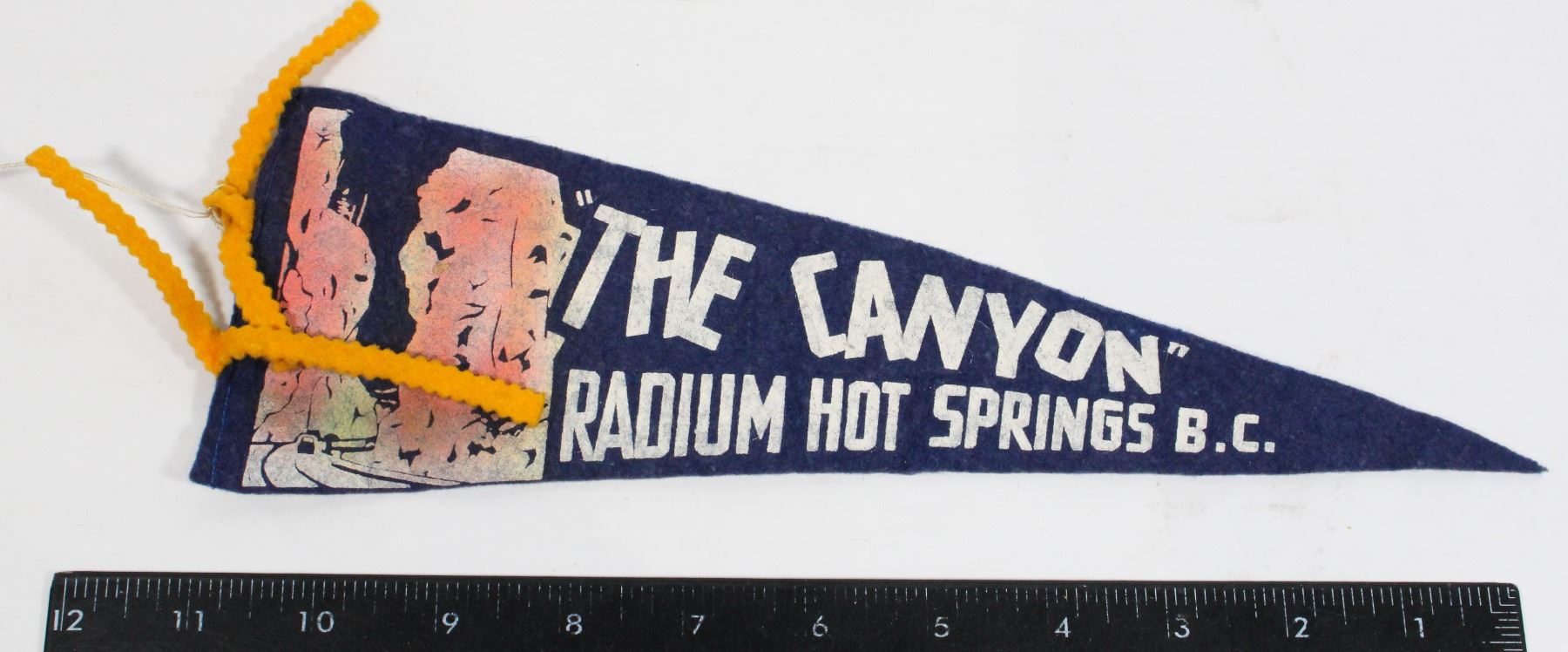 The Canyon British Columbia Small Size Pennant Roughly 13 x 5 Inches in Length Vintage Canadian Mid 20th Century 1900's Canada