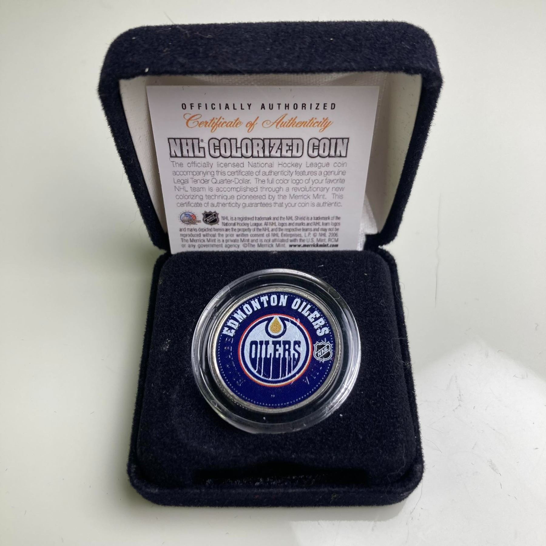 Edmonton Oilers. In box with COA.