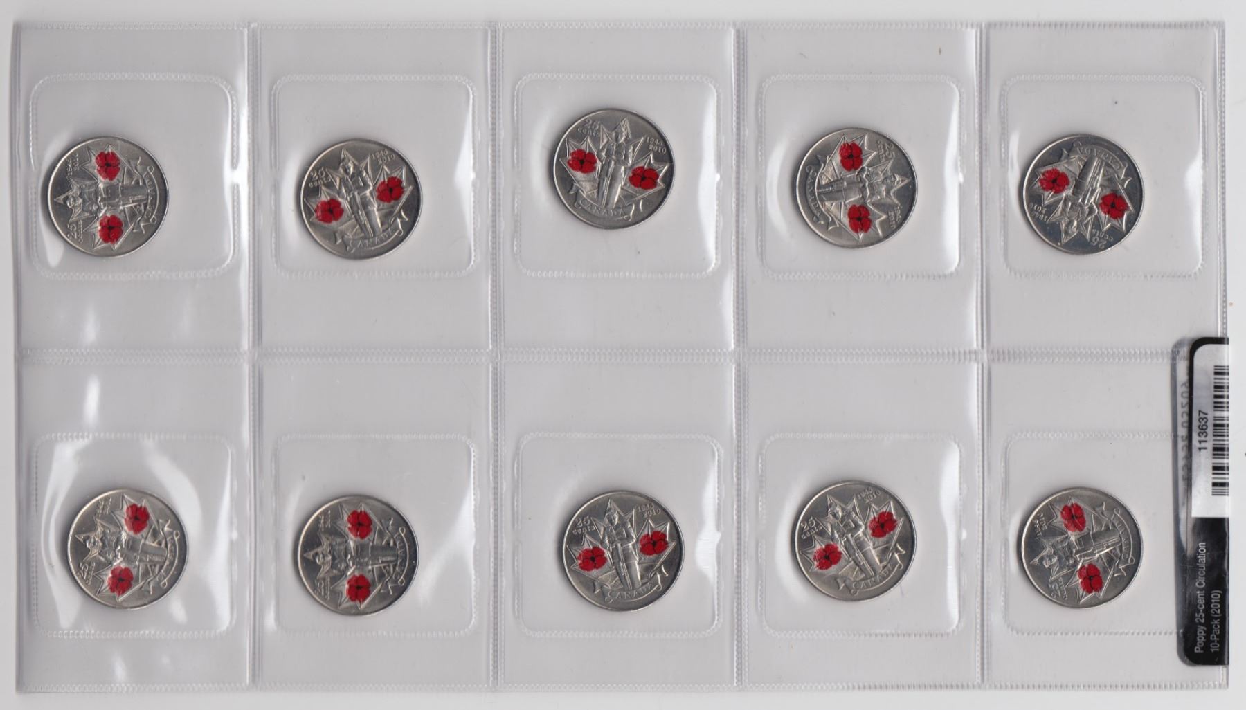 Lot 63 2010 Canada Poppy 25 Cent 10 Pack