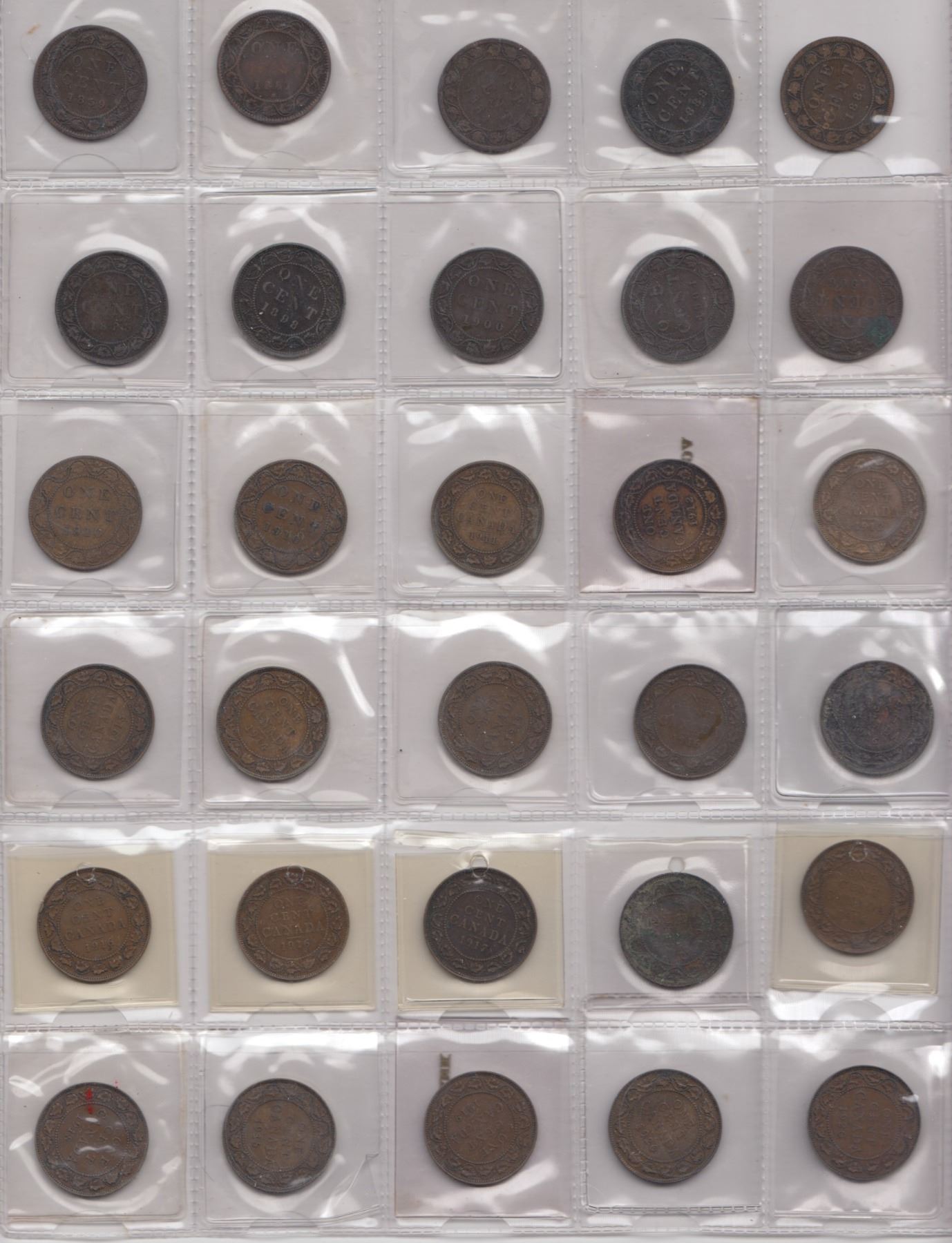 Dates range between 1859 and 1920. Some duplication. Look to be average circulated grades. 1859, 1881H, 1884, 1888x2, 1893, 1898, 1900, 1904, 1906, 1910x2, 1911, 1912x2, 1913, 1914, 1915, 1916x5, 1917x2, 1918x2, 1919, 1920x2