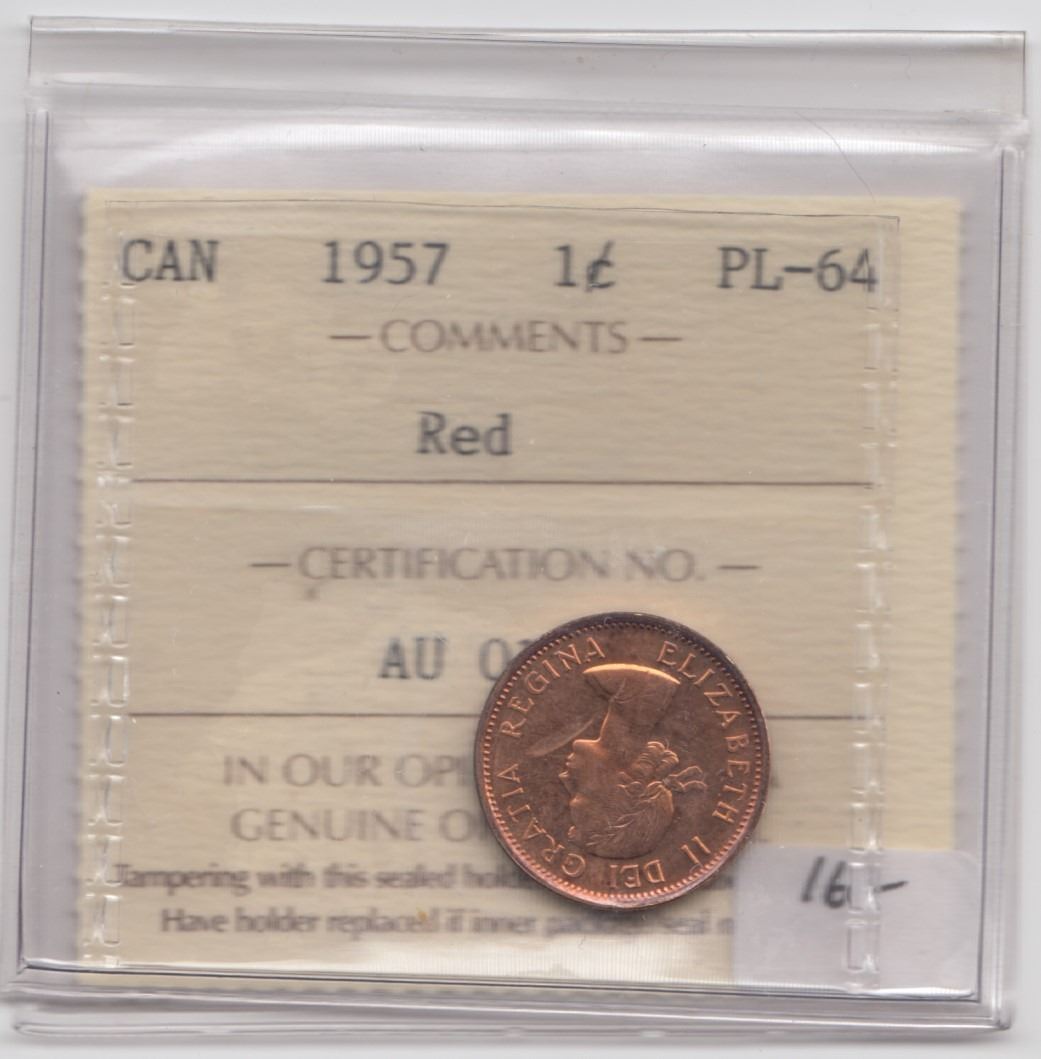 Lot 110 1957 Canada 1 Cent ICCS PL64