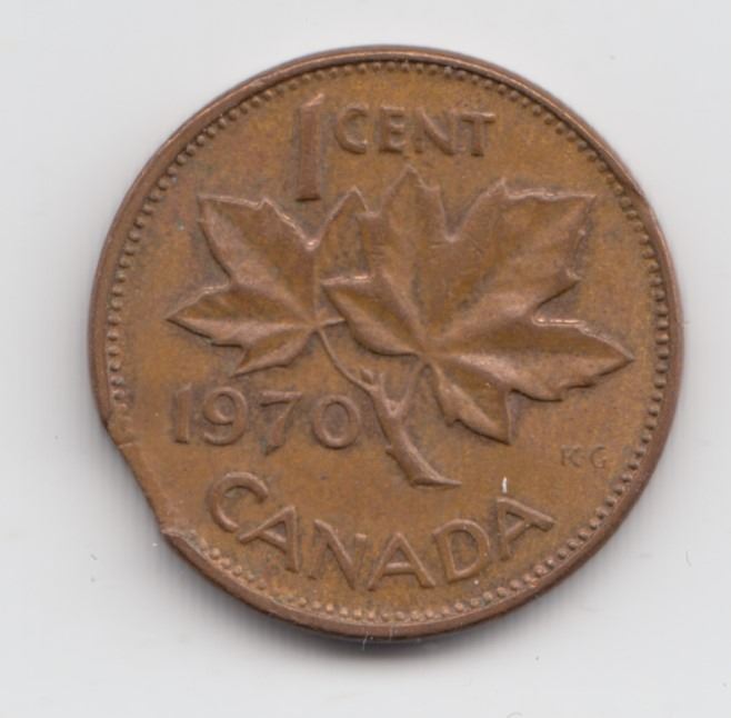 Lot 115 1970 Canada 1 Cent Clipped Planchet Error