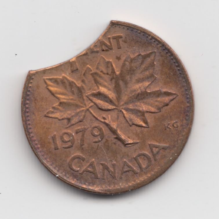 1979 Canada 1 Cent Clipped Planchet Error