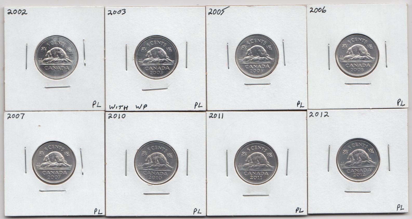 Lot 133 Lot of 8 Canada Prooflike 5 Cent Coins