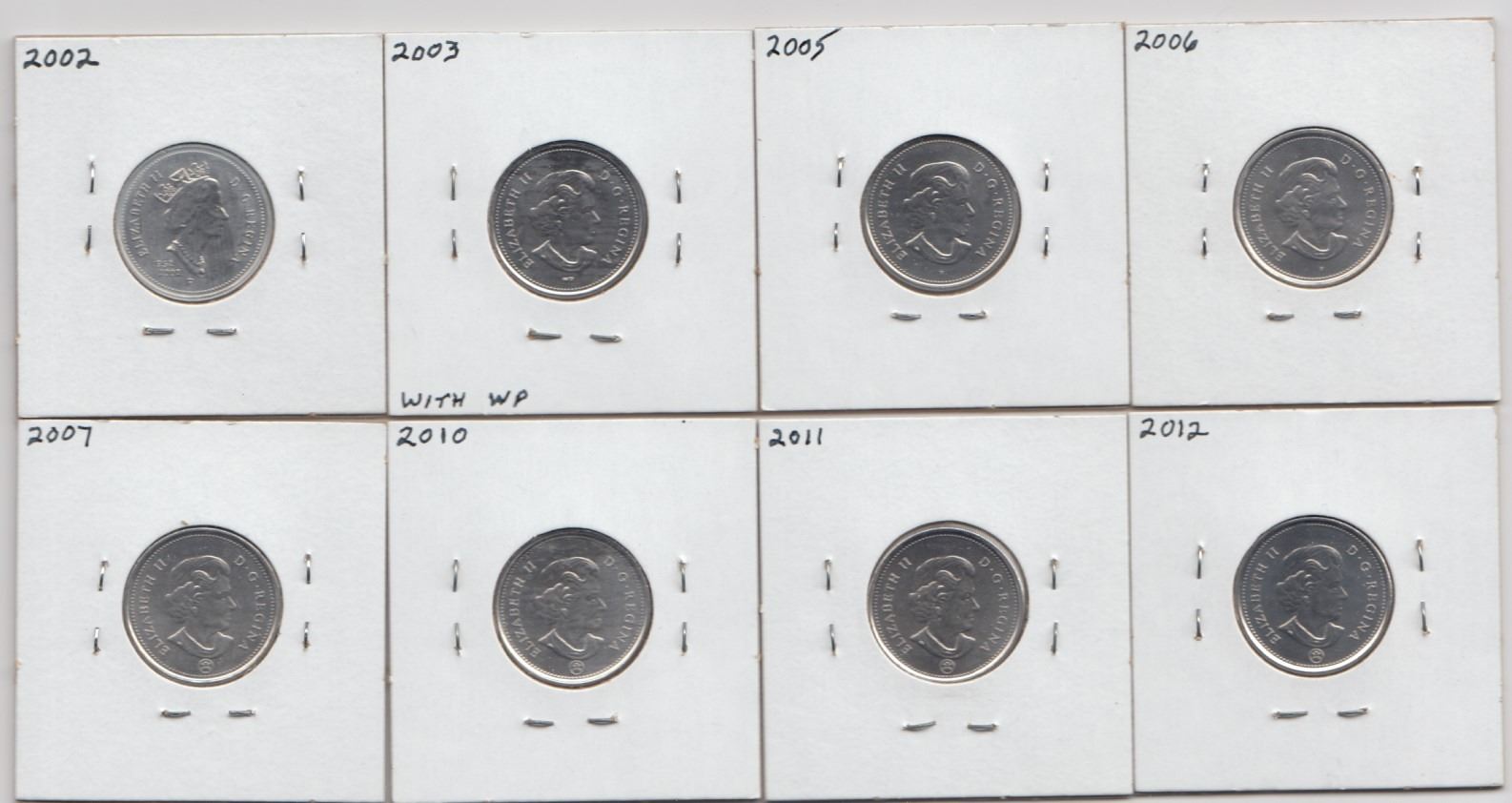2002P, 2003WP, 2005P, 2006P, 2007, 2010, 2011, 2012. 8 coins.