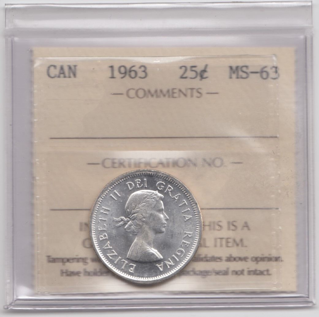 1963 Canada 25 Cents ICCS MS63