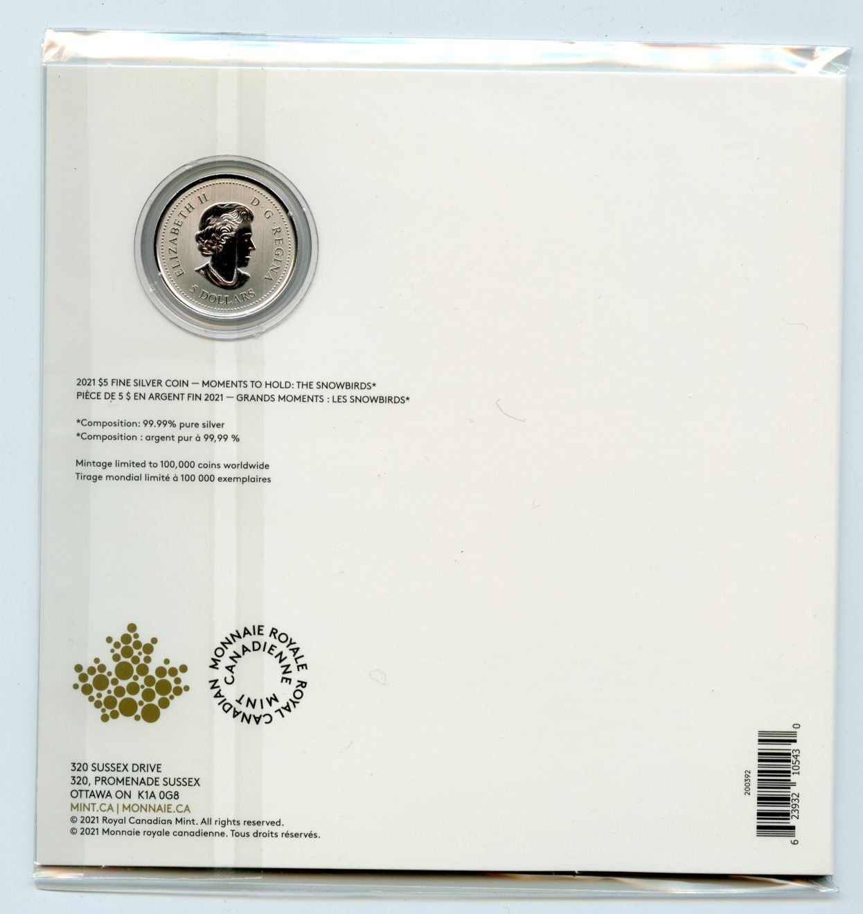 Lot 211 2021 Canada $5 Fine Silver Coin