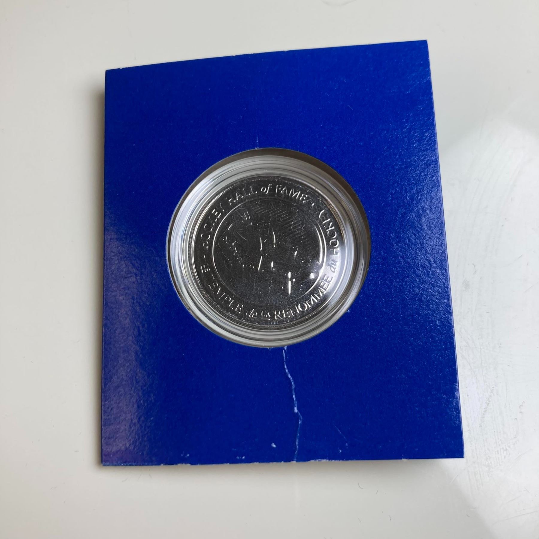 Inducted into the Hockey Hall of Fame medal. Outer box shows a little wear.