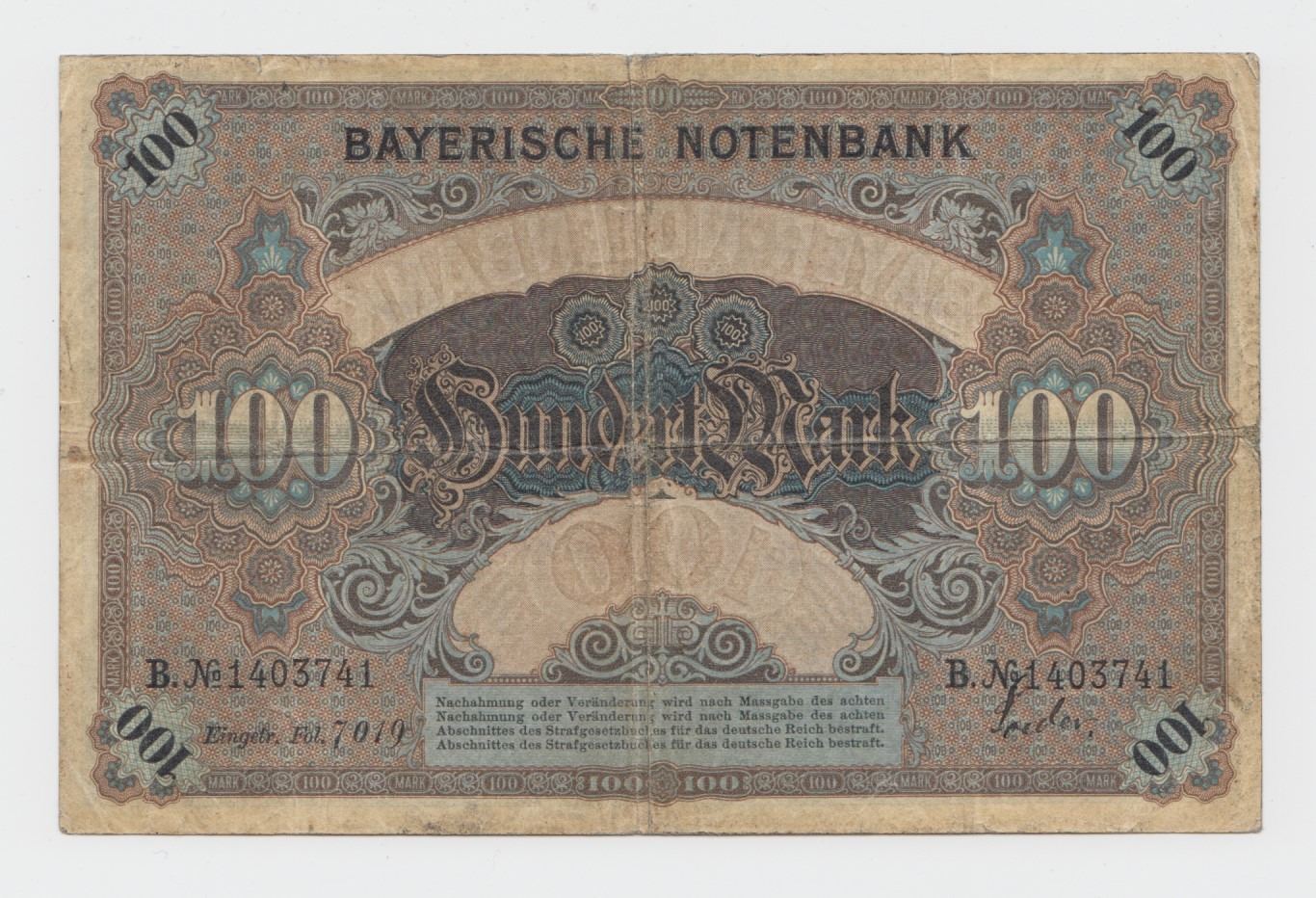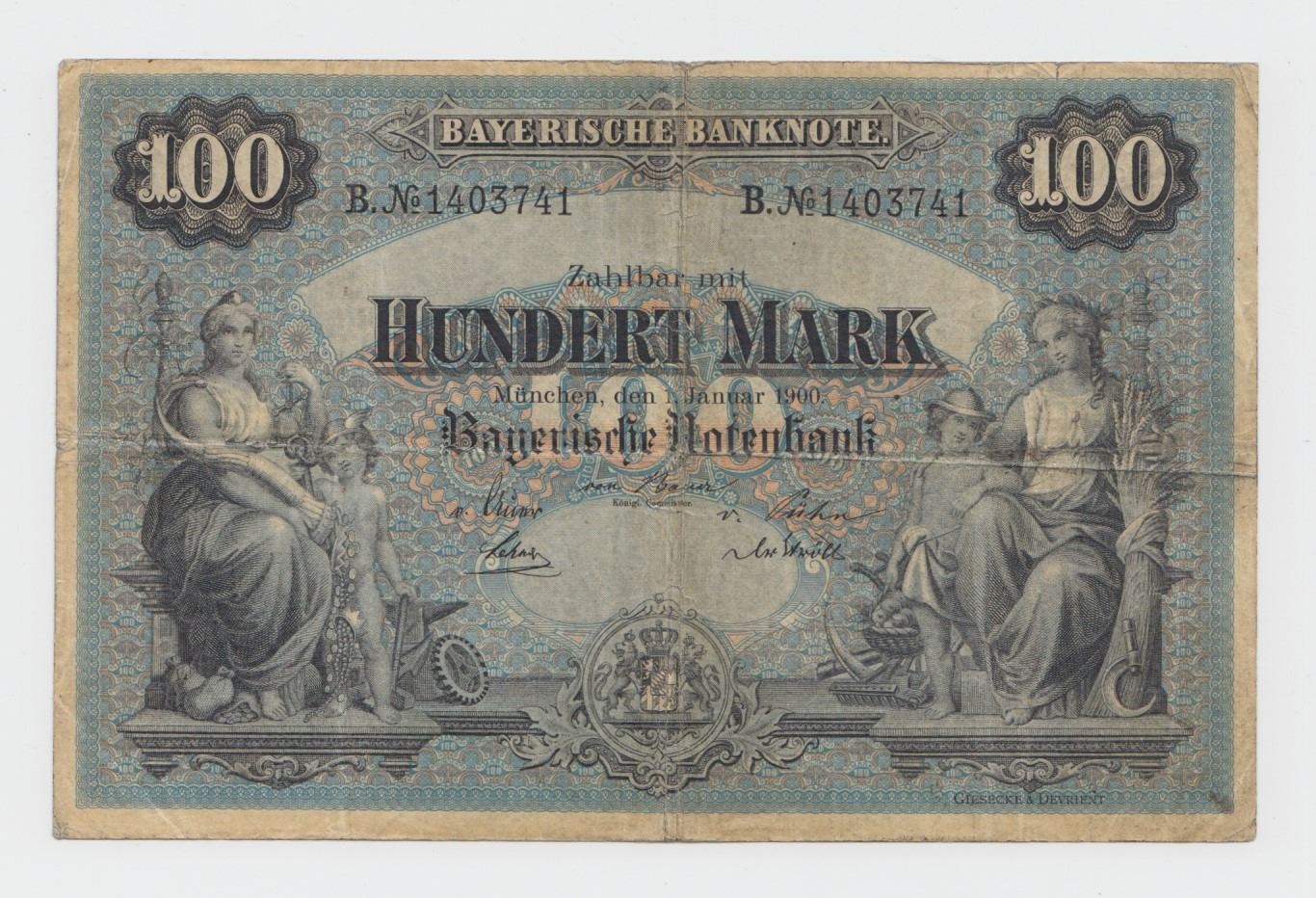 Lot 297 1900 Bavaria 100 Mark Note