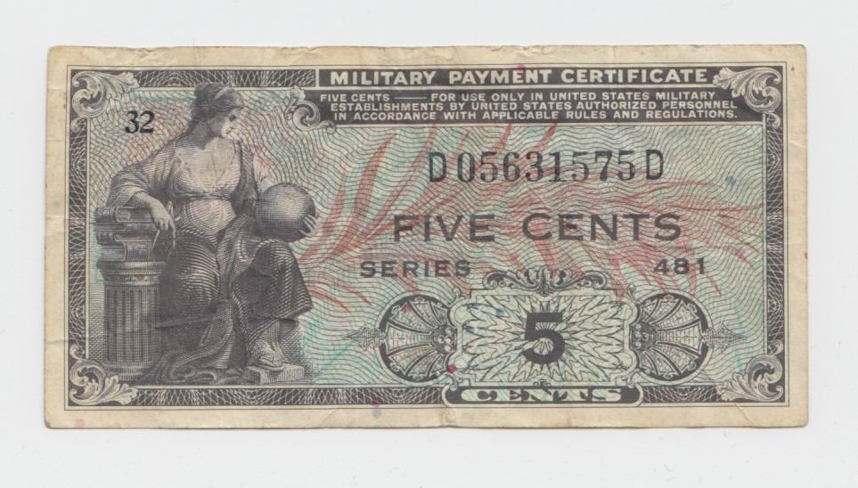 Lot 336 1951 US 5 Cents US Military Payment Certificate