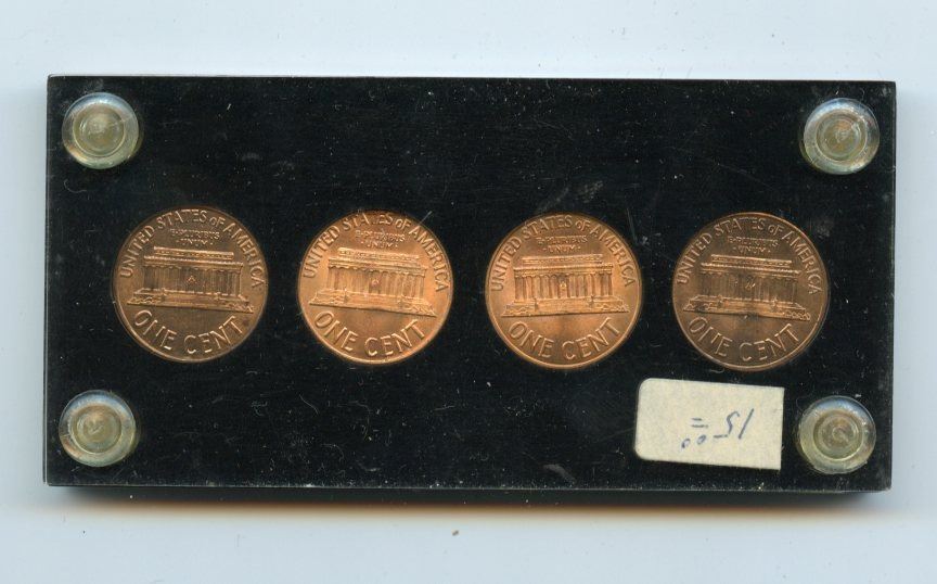Large and small date examples of Denver and Philadelphia Mint pennies in nice holder.