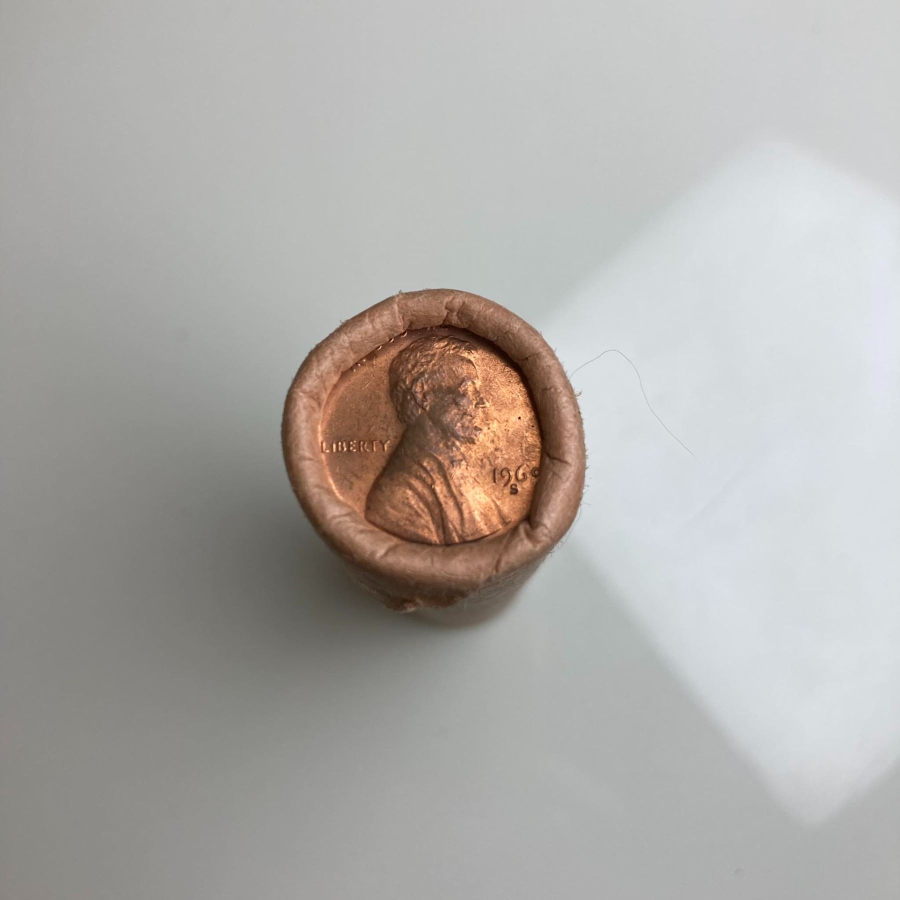 Unopened roll of pennies.