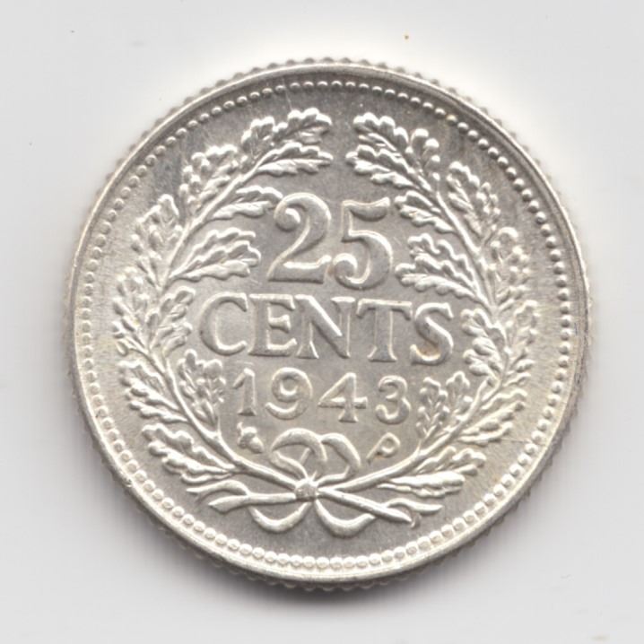 Lot 452 1943 Netherlands 25 Cents Silver Coin