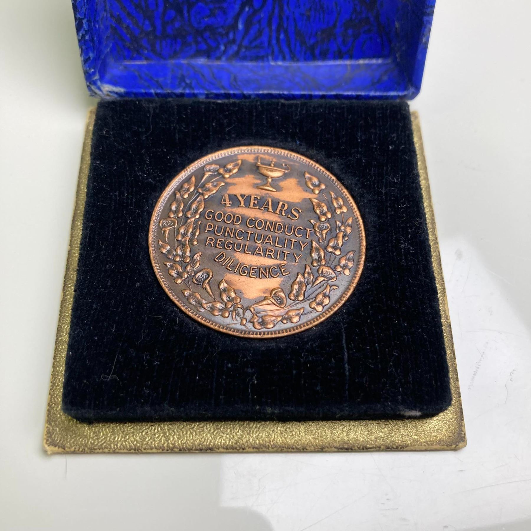 4 Years Good Conduct Punctuality Regularity Diligence. Bronze, approx. 34mm in case of issue.
