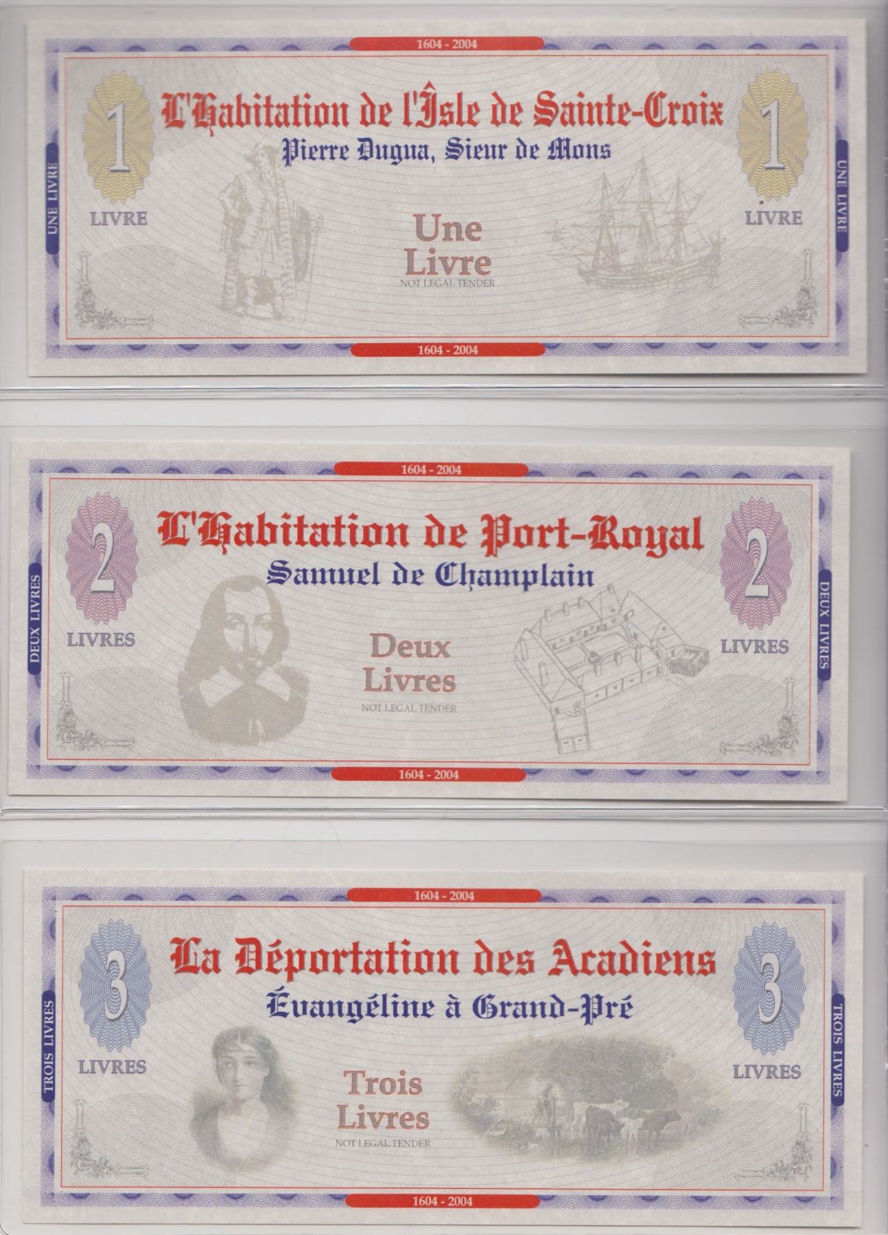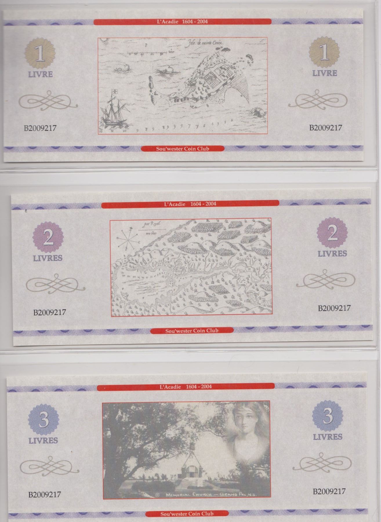 Nova Scotia. 1, 2, and 3 livres. Unc.