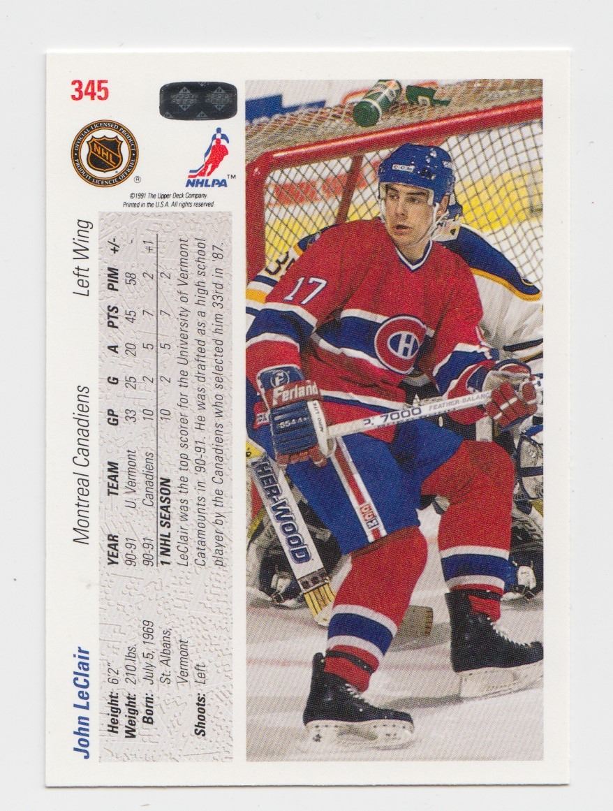 Lot 582 1991-92 UD John Leclair #345 Rookie Card