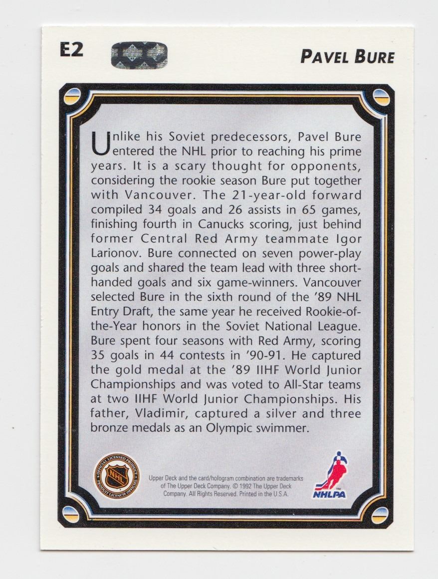 Lot 584 1992-93 UD Pavel Bure #E2 Insert