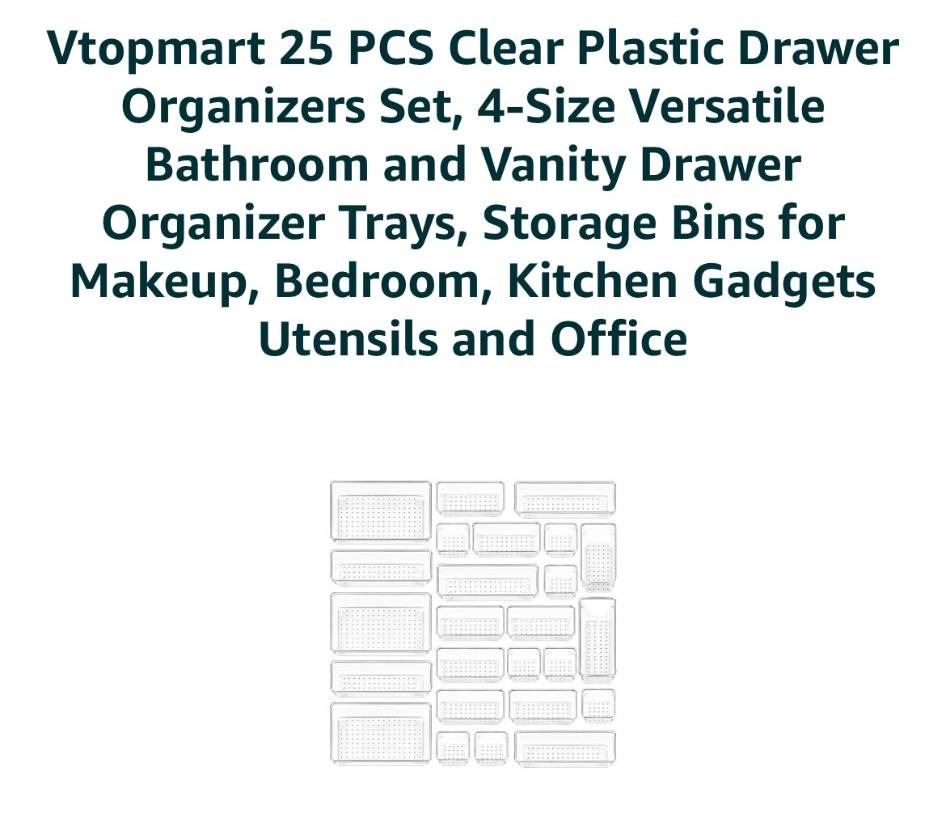 Vtopmart 25 PCS Plastic Drawer Organizer Set 4 SizesÂ