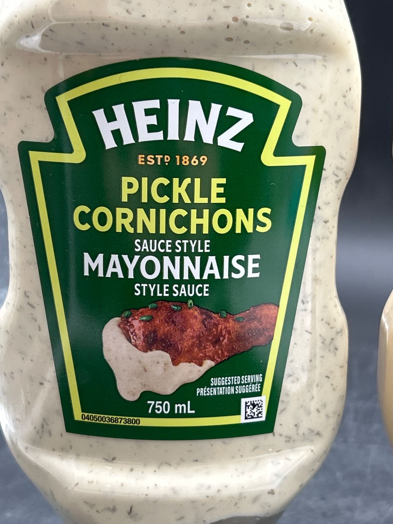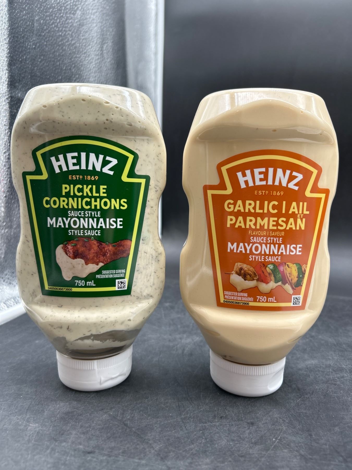 Lot 4092 Heinz Pickle Mayonnaise and Garlic Parmesan Mayonnaise Style Sauces, 750 mL Each