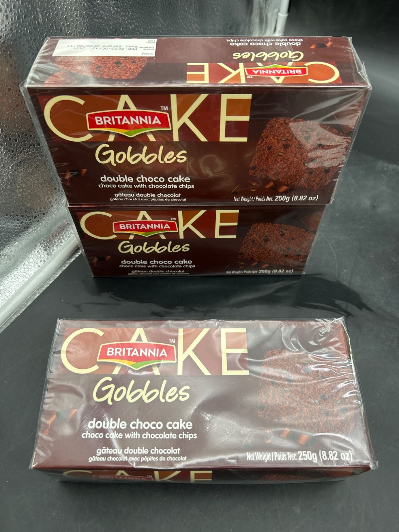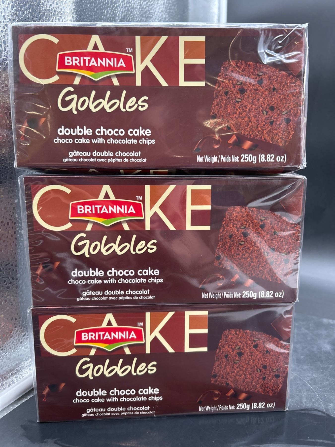 Lot 4114 Lot of 3 Britannia Gobbles Double Choco Cake 250g Each